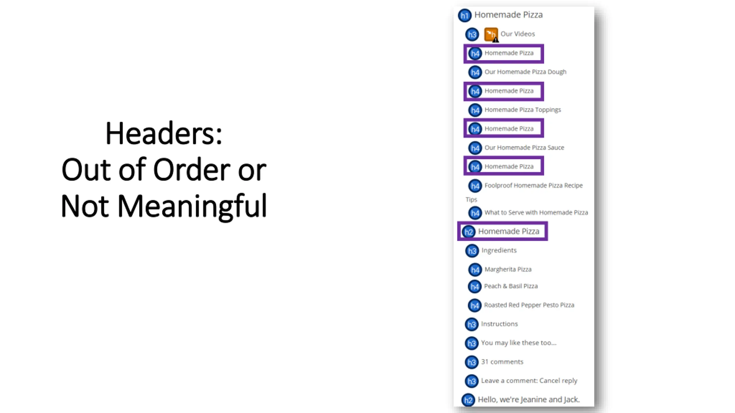 Headers: Headers: Out of Order or Out of Order or Not Meaningful Not Meaningful