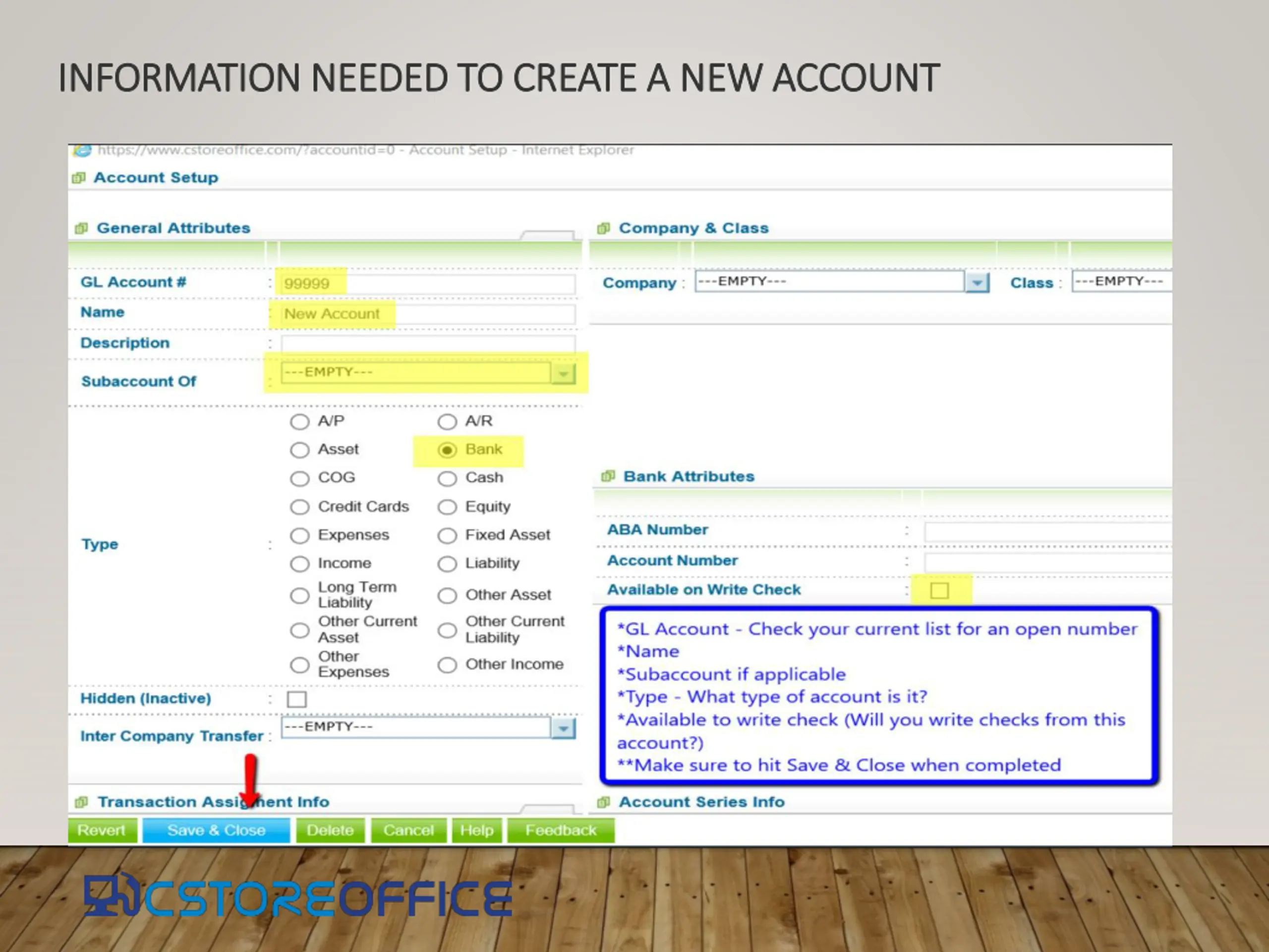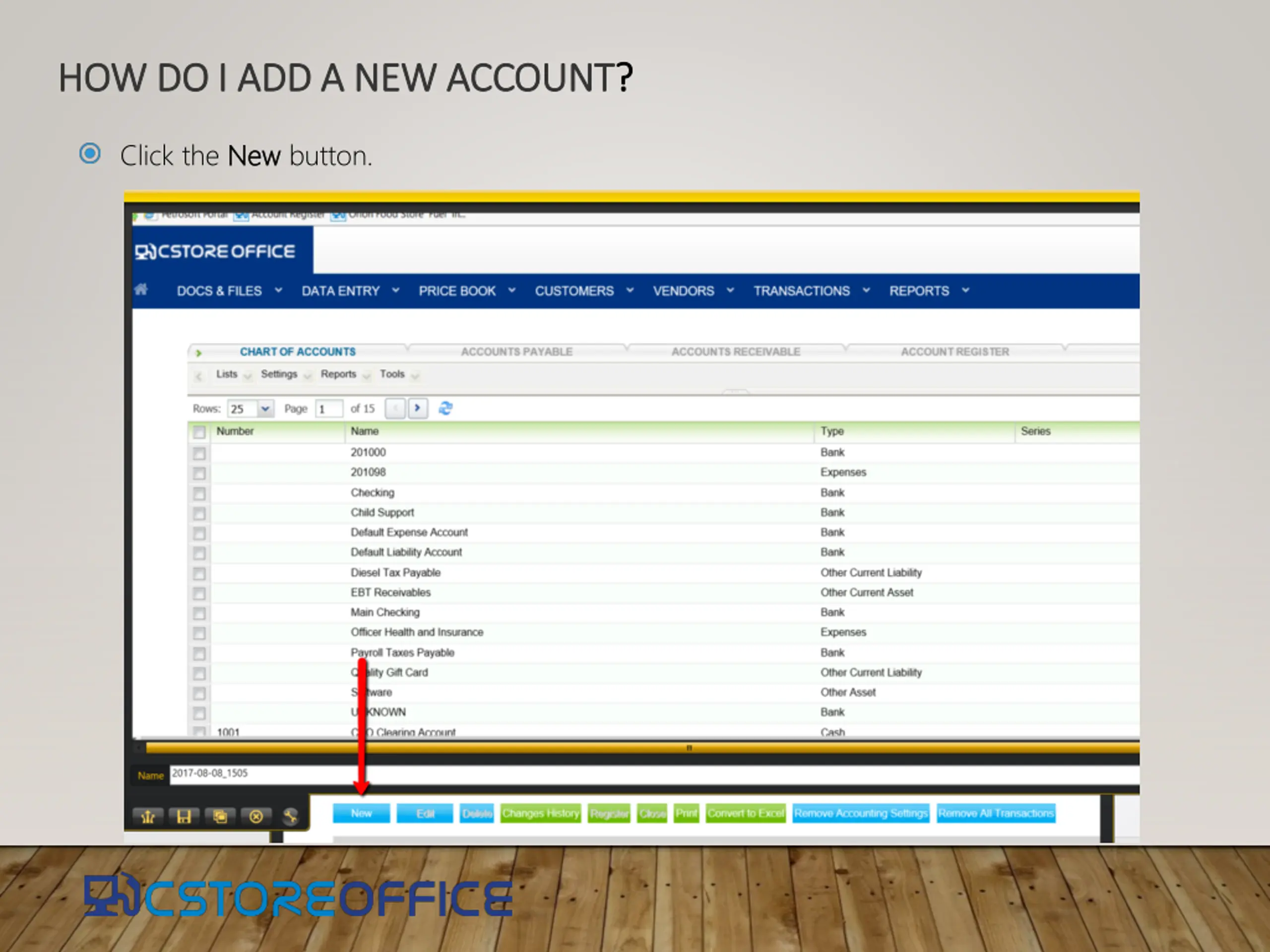 WHY DO I NEED TO ADD A NEW ACCOUNT WHY DO I NEED TO ADD A NEW ACCOUNT? ? C-Store gathers data from your cash register: if you want to track new information and do not have it in your current chart of accounts, you need to add it to allow data to capture the information Business additions and subtractions: If you need to add/delete bank accounts, payable/receivable, fixed assets, income, liabilities, assets, cash, cost of goods sold, and expenses