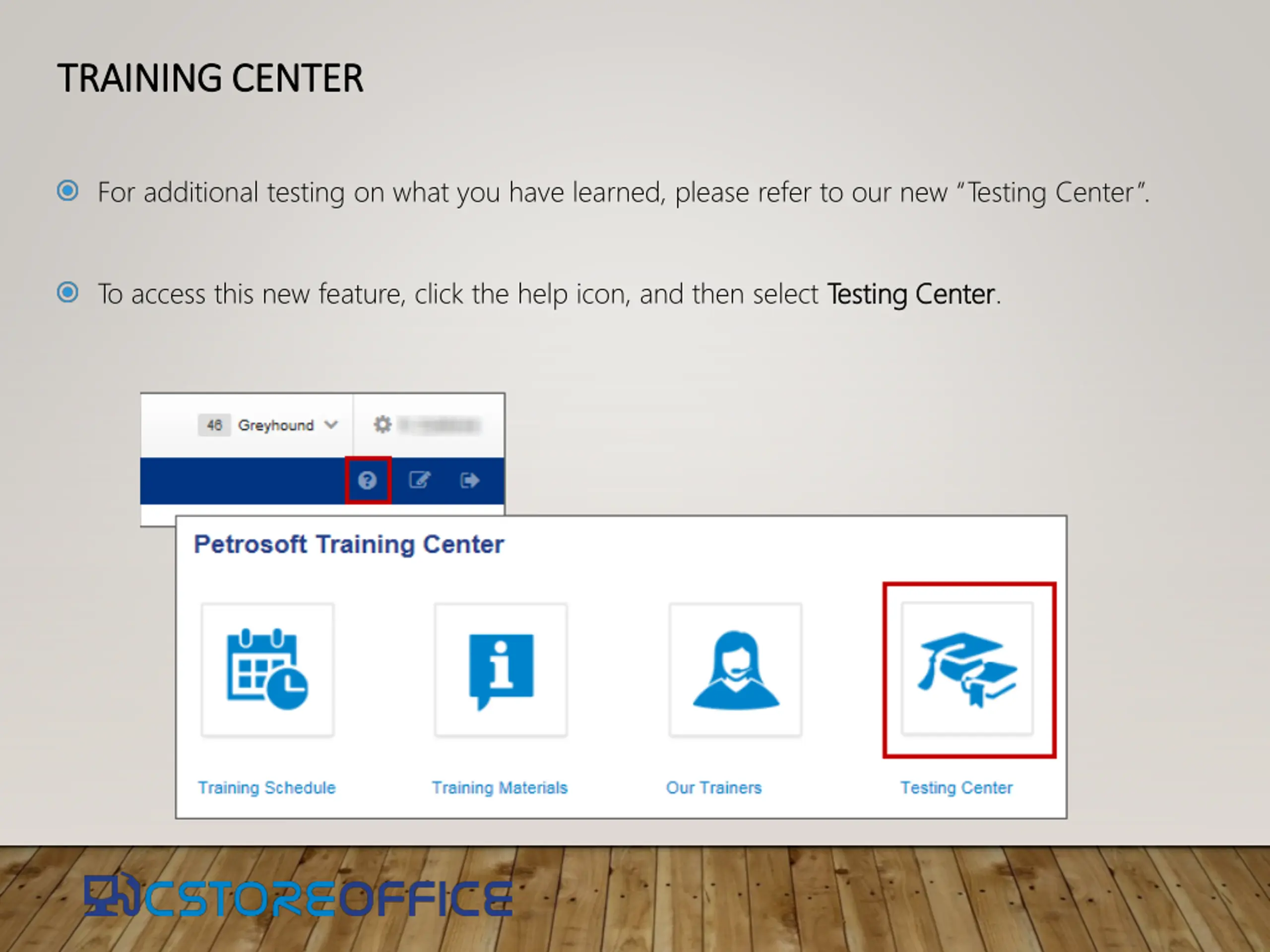 TRAINING CENTER TRAINING CENTER For additional testing on what you have learned, please refer to our new Testing Center . To access this new feature, click the help icon, and then select Testing Center Testing Center.