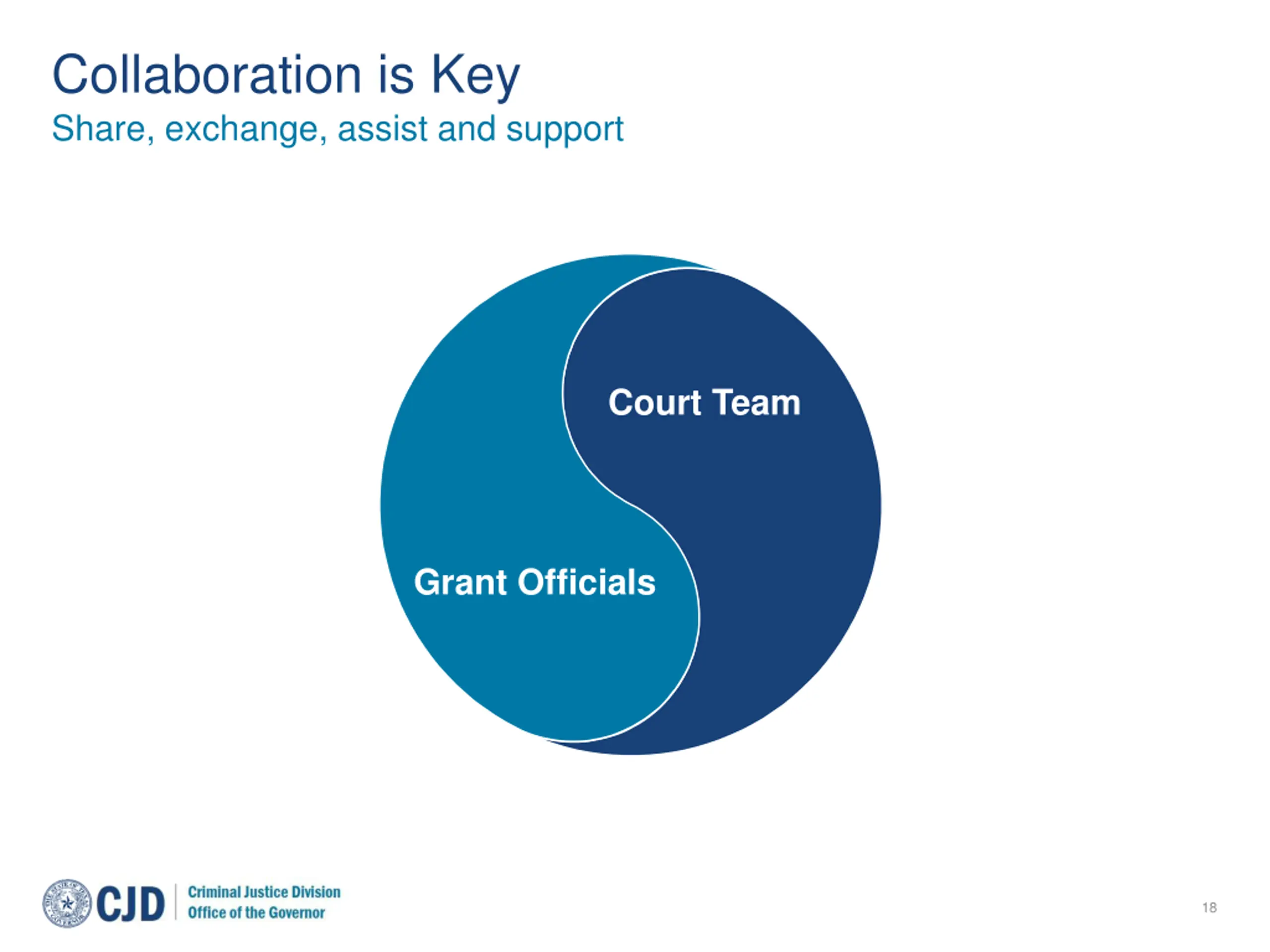 Collaboration is Key Share, exchange, assist and support Court Team Grant Officials 18