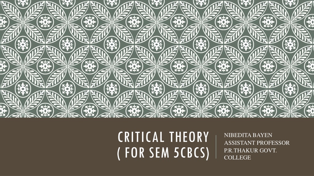 CRITICAL THEORY ( FOR SEM 5CBCS) NIBEDITA BAYEN ASSISTANT PROFESSOR P.R.THAKUR GOVT. COLLEGE