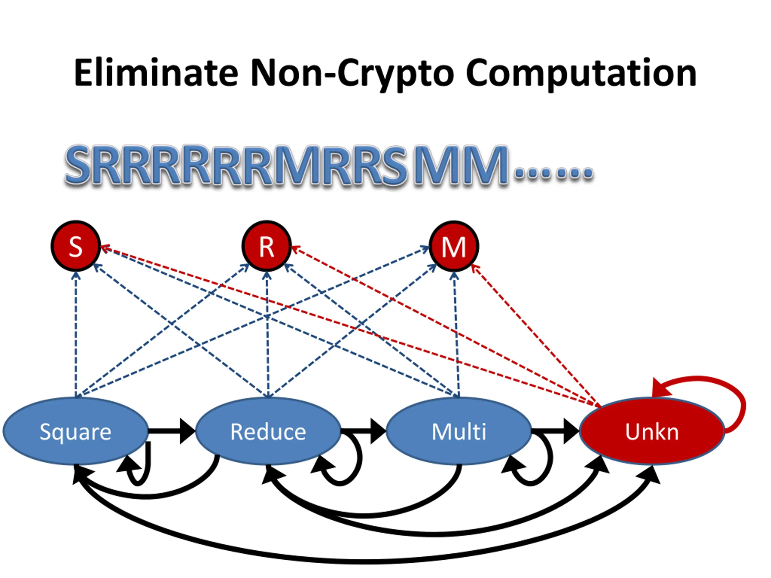 Eliminate Non-Crypto Computation Key Observations S:M Ratio should be roughly 2:1 for long enough sequences! MM signals an error (never two sequential multiply operations)