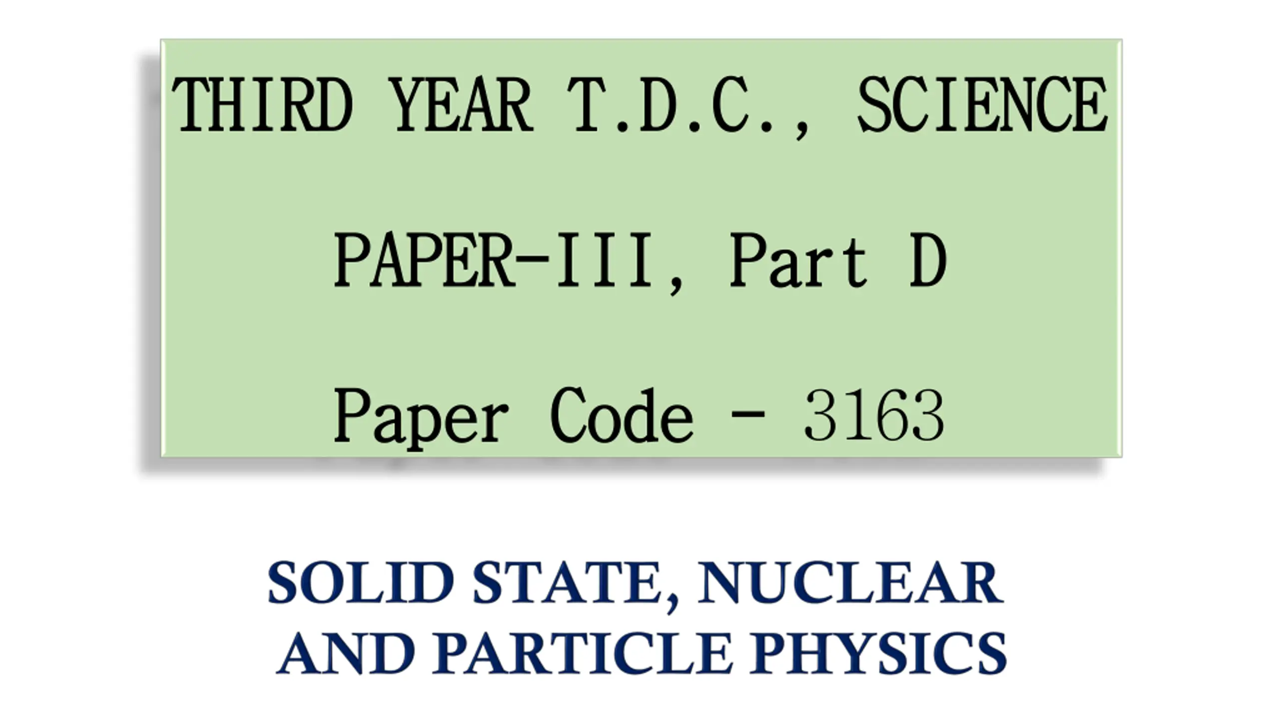 THIRD YEAR T.D.C., THIRD YEAR T.D.C., SCIENCE SCIENCE PAPER PAPER- -III, Part D III, Part D Paper Code Paper Code - - 3163