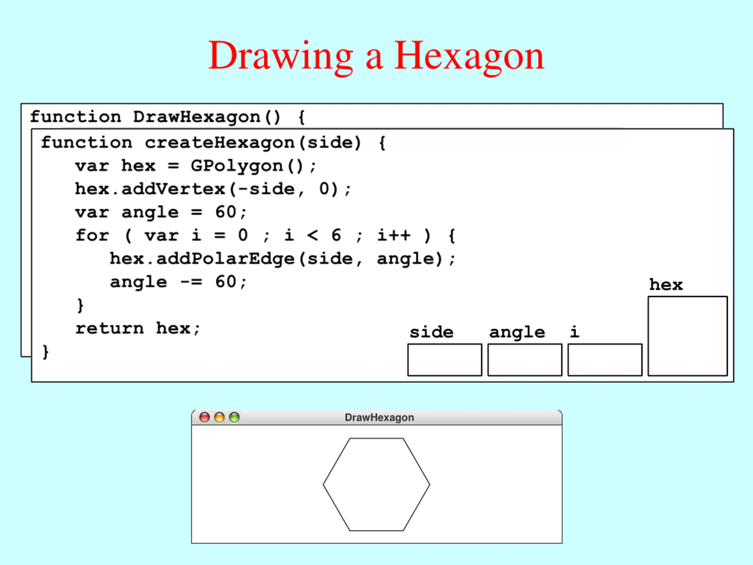 Drawing a Hexagon hex hex hex gw i i side side angle 60 -60 -120 -180 -240 -300 angle 60 0 0 1 2 3 4 5 6 DrawHexagon