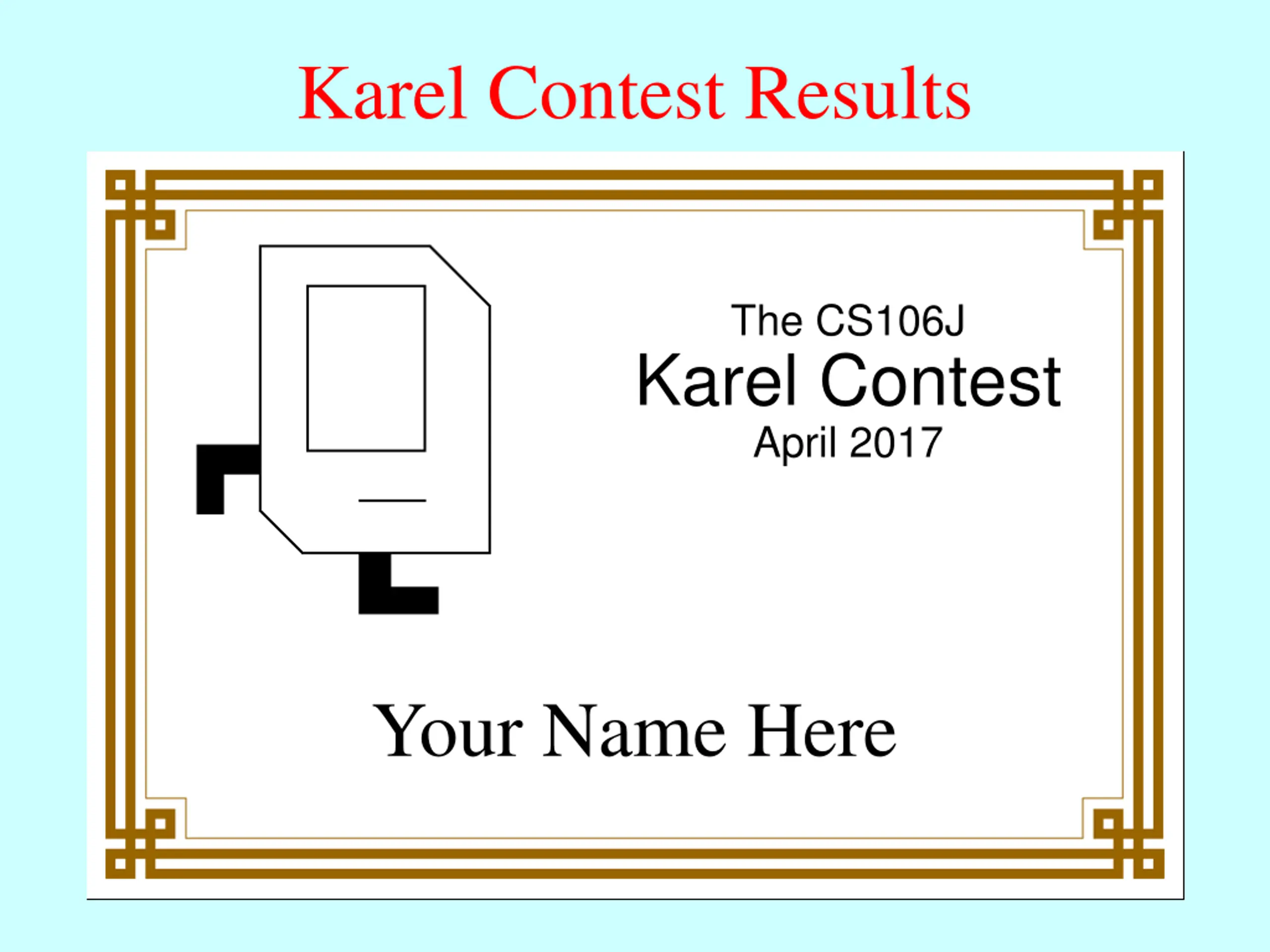 Karel Contest Results The CS106J Karel Contest April 2017 Your Name Here