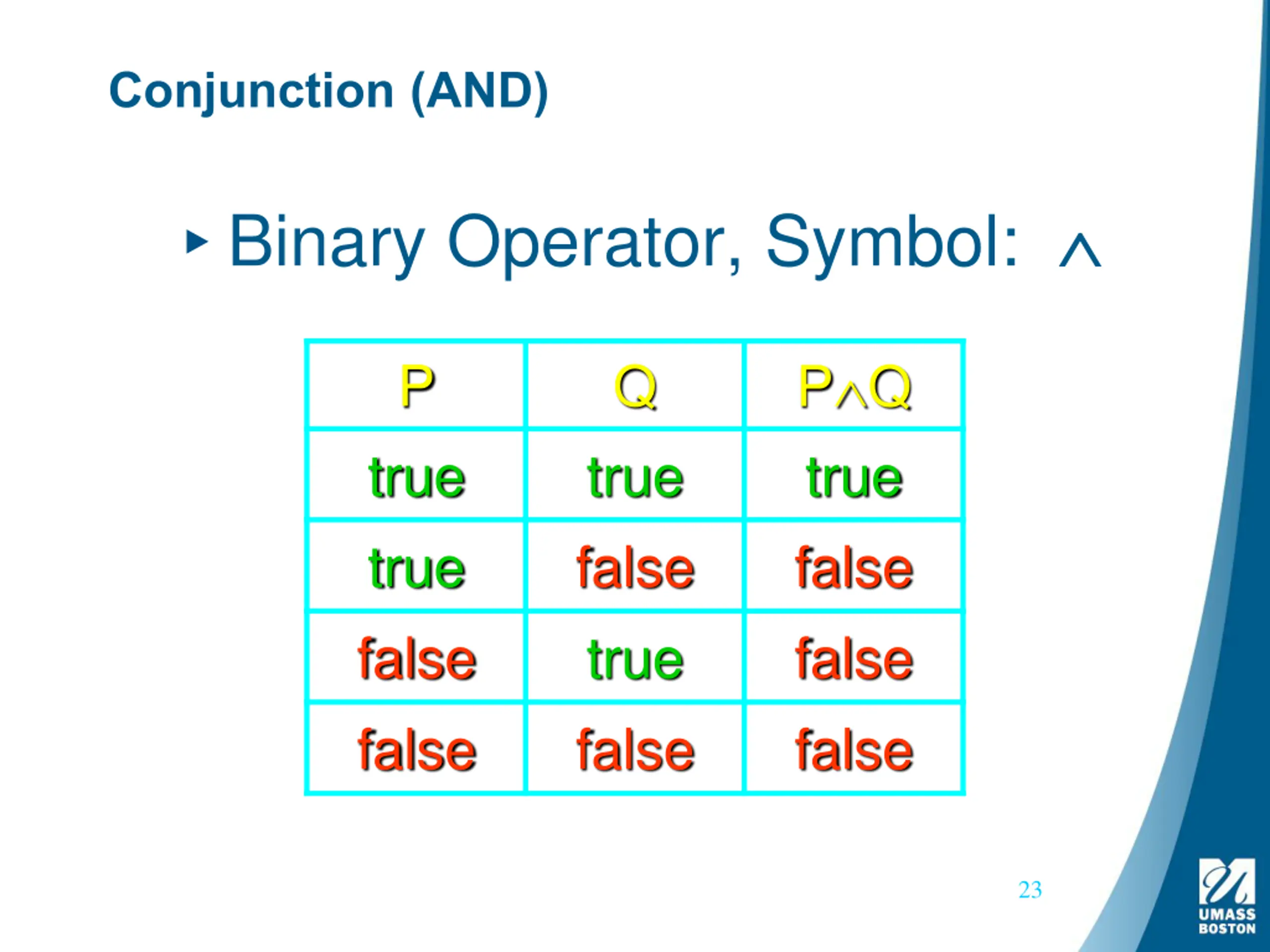 Conjunction (AND) Binary Operator, Symbol: P Q true false false false P Q true true false false true false true false 23