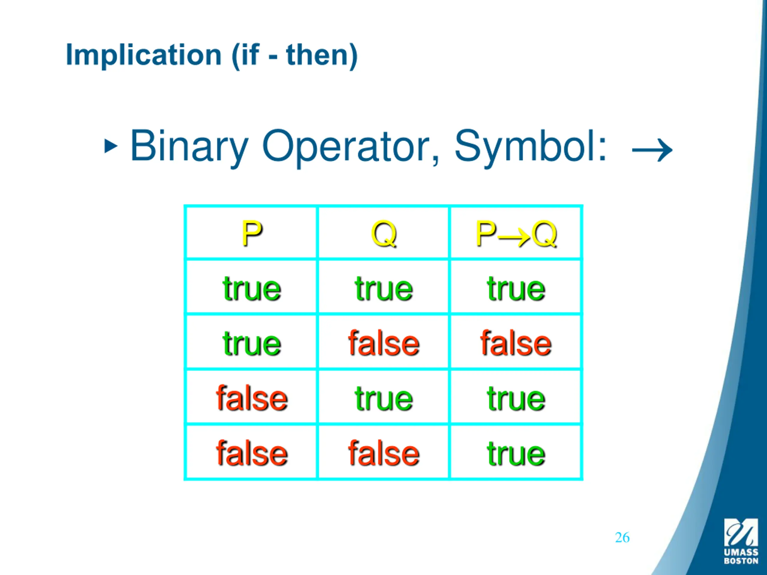 Implication (if - then) Binary Operator, Symbol: P Q true false true true P Q true true false false true false true false 26