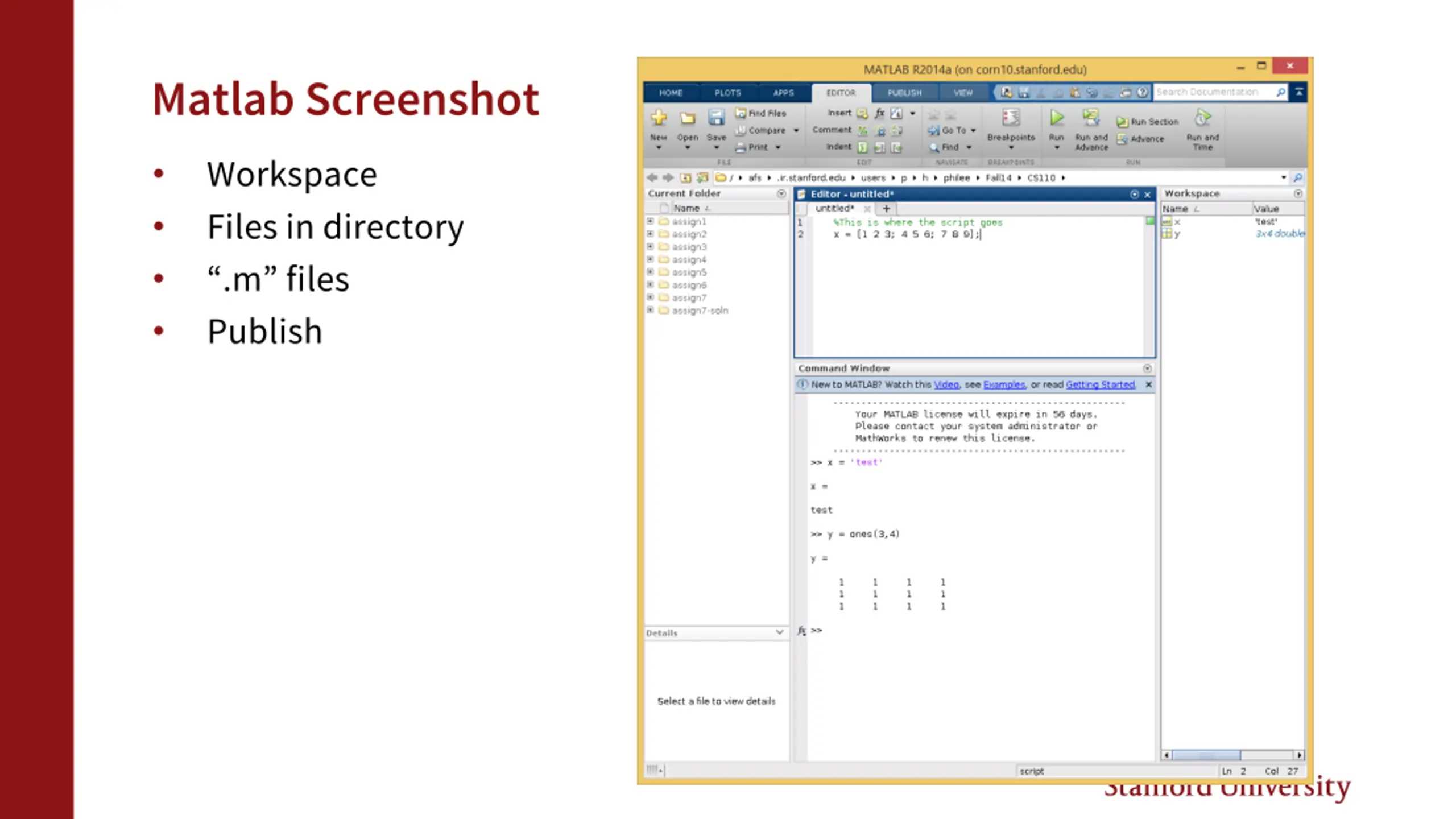 MatlabScreenshot Workspace Files in directory .m files Publish