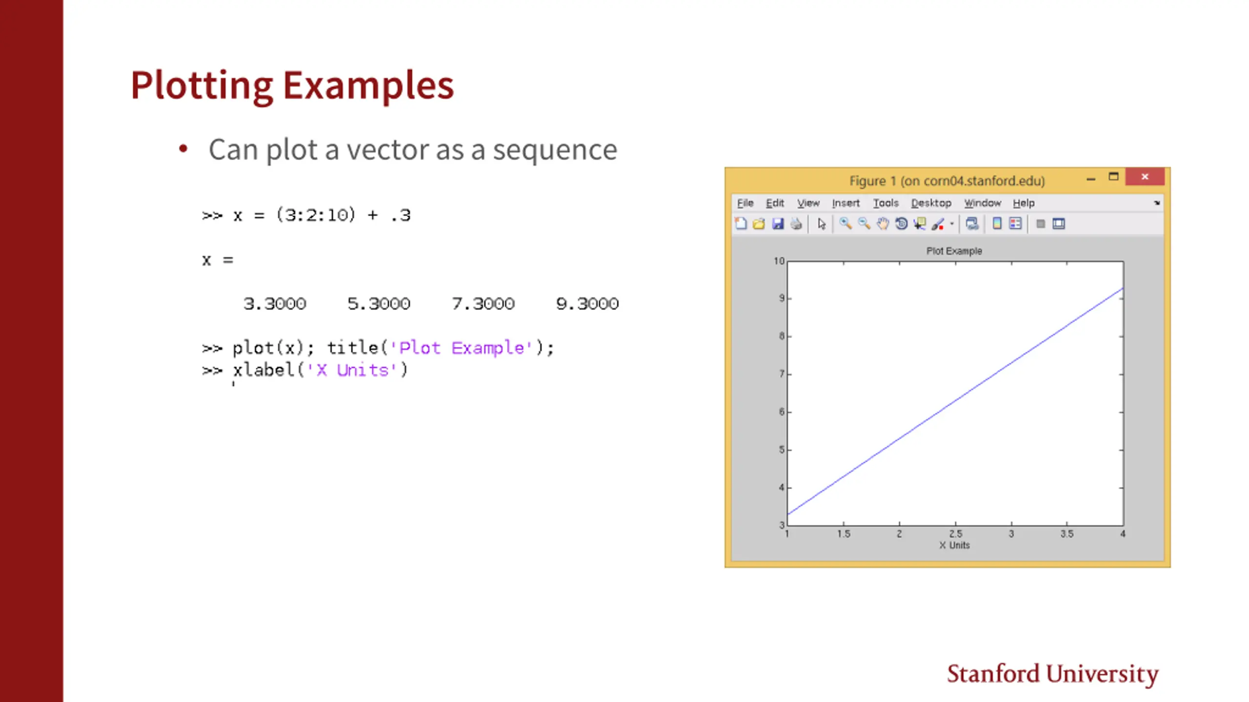 Plotting Examples (cont.) Can plot two vector as ordered pairs