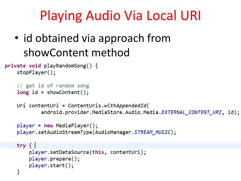Playing Audio Via Local URI id obtained via approach from showContent method 25