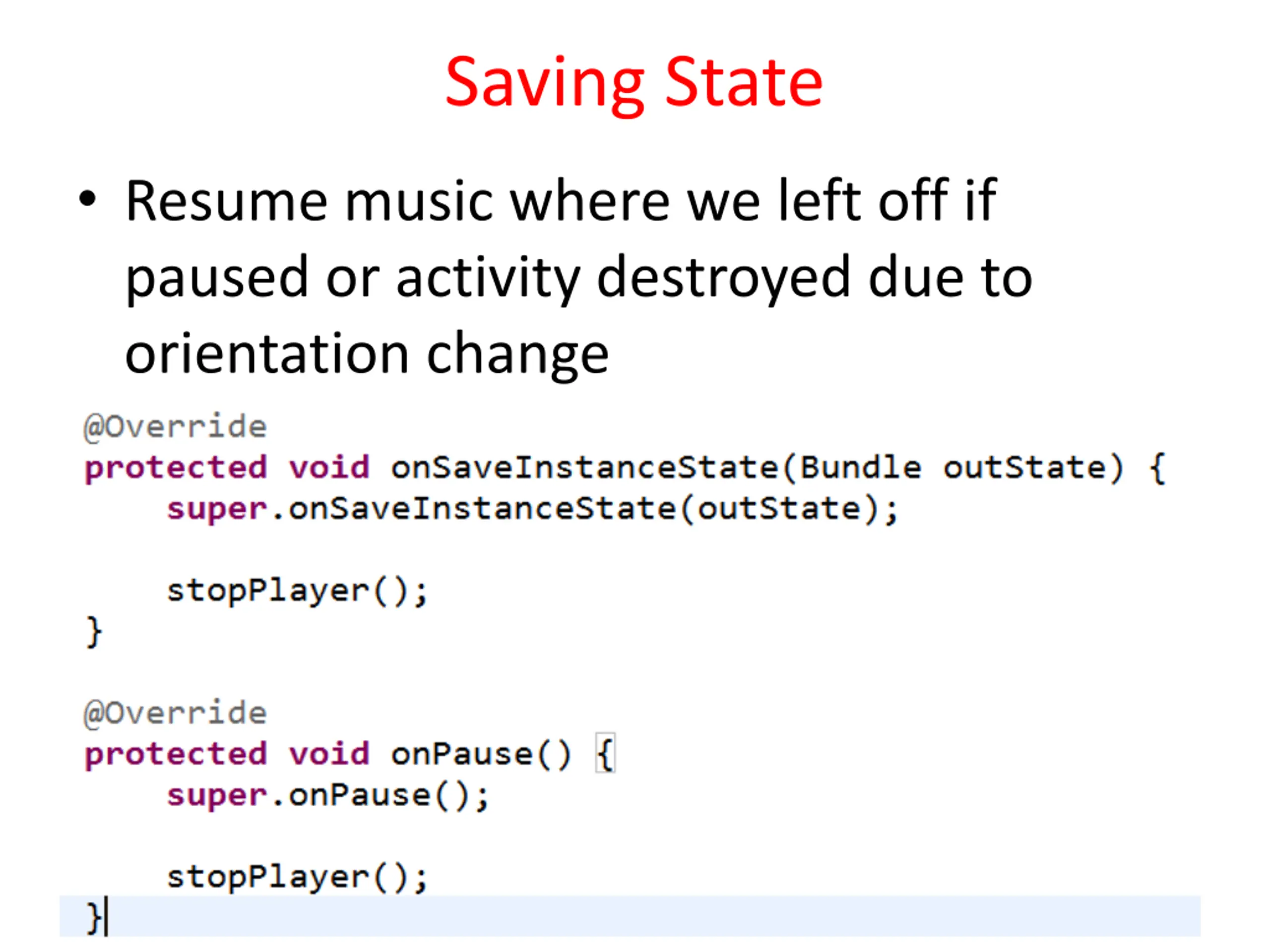 Saving State Resume music where we left off if paused or activity destroyed due to orientation change 18