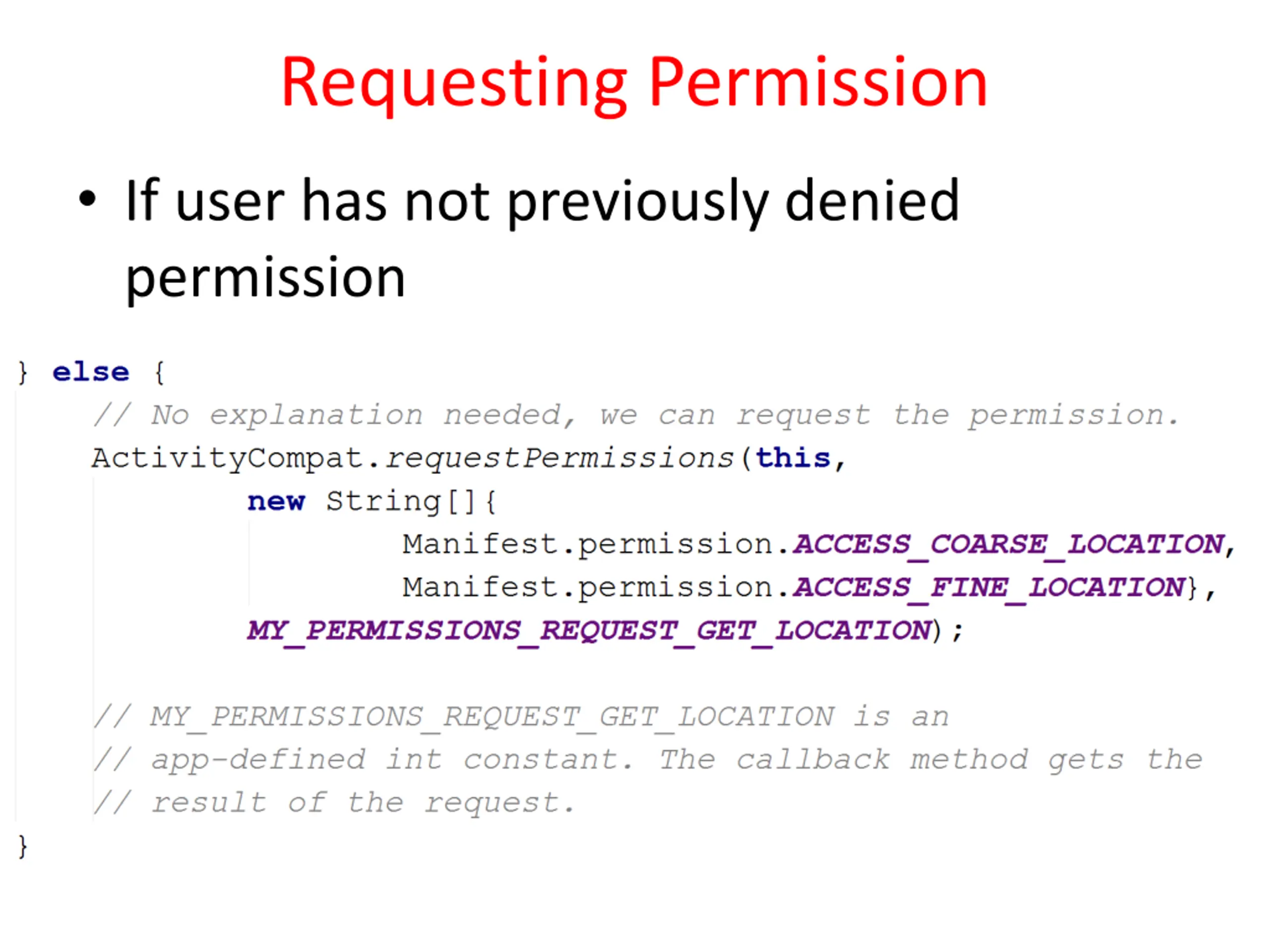 Requesting Permission If user has not previously denied permission
