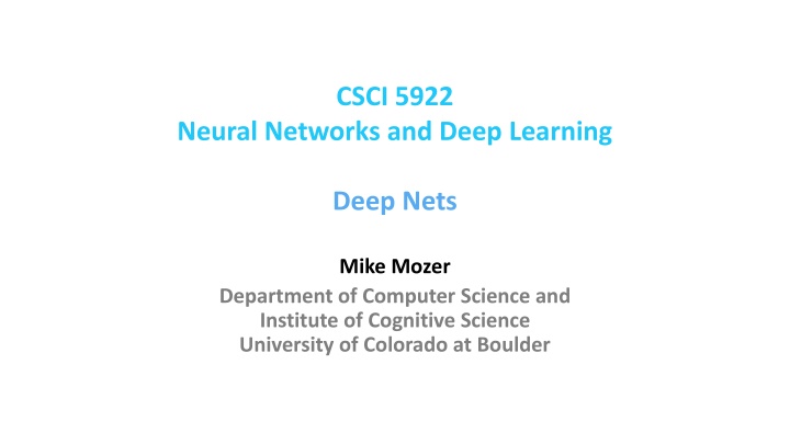 CSCI 5922 Neural Networks and Deep Learning Deep Nets Mike Mozer Department of Computer Science and Institute of Cognitive Science University of Colorado at Boulder