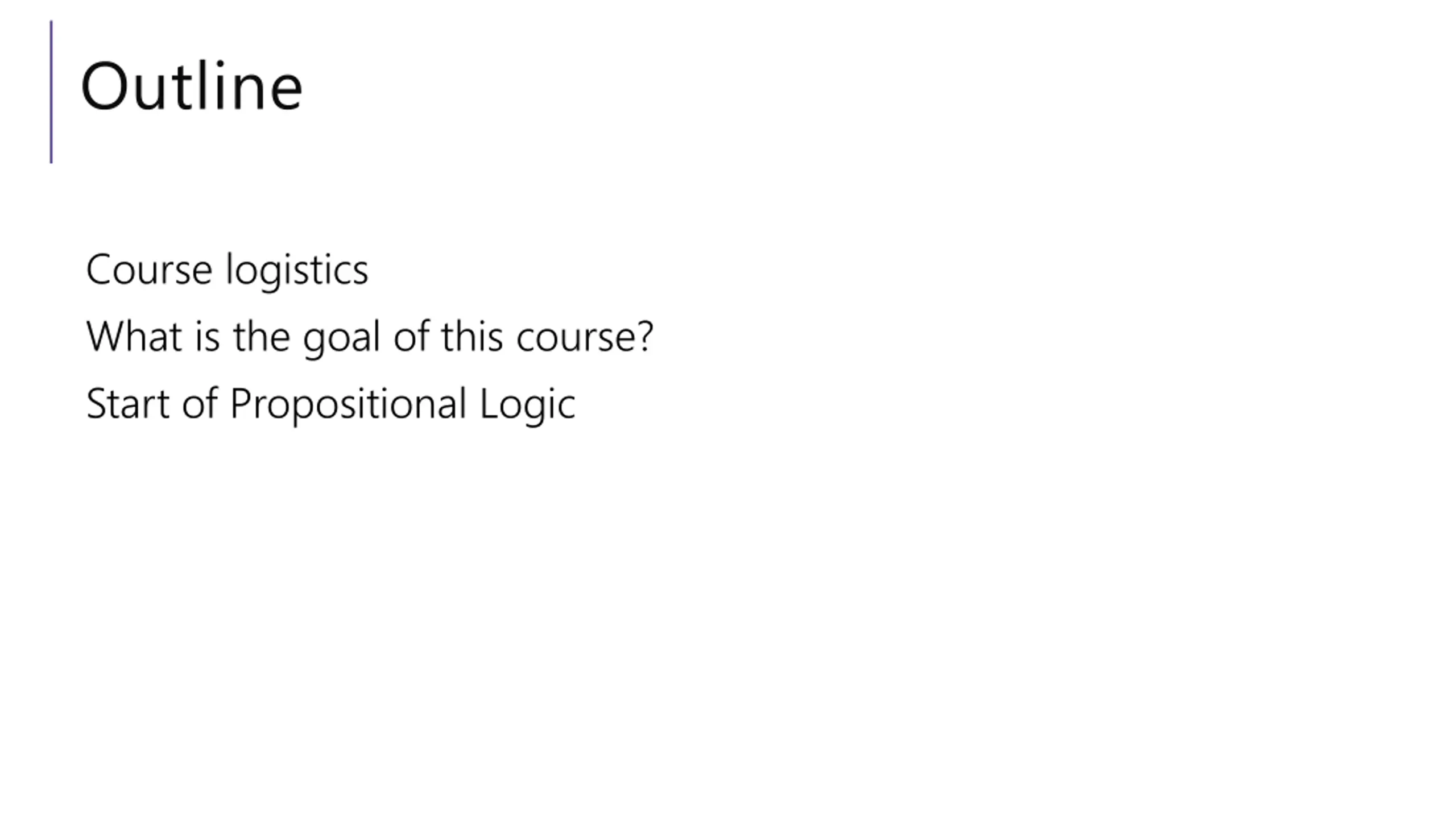 Outline Course logistics What is the goal of this course? Start of Propositional Logic