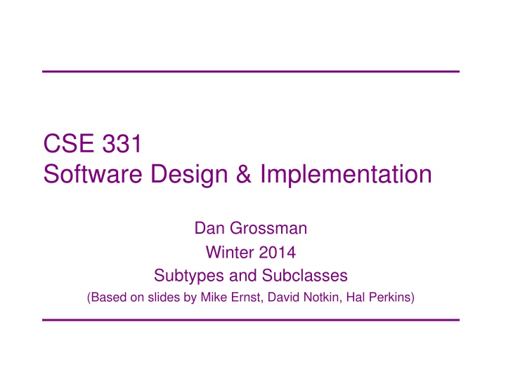 CSE 331 Software Design & Implementation Dan Grossman Winter 2014 Subtypes and Subclasses (Based on slides by Mike Ernst, David Notkin, Hal Perkins)