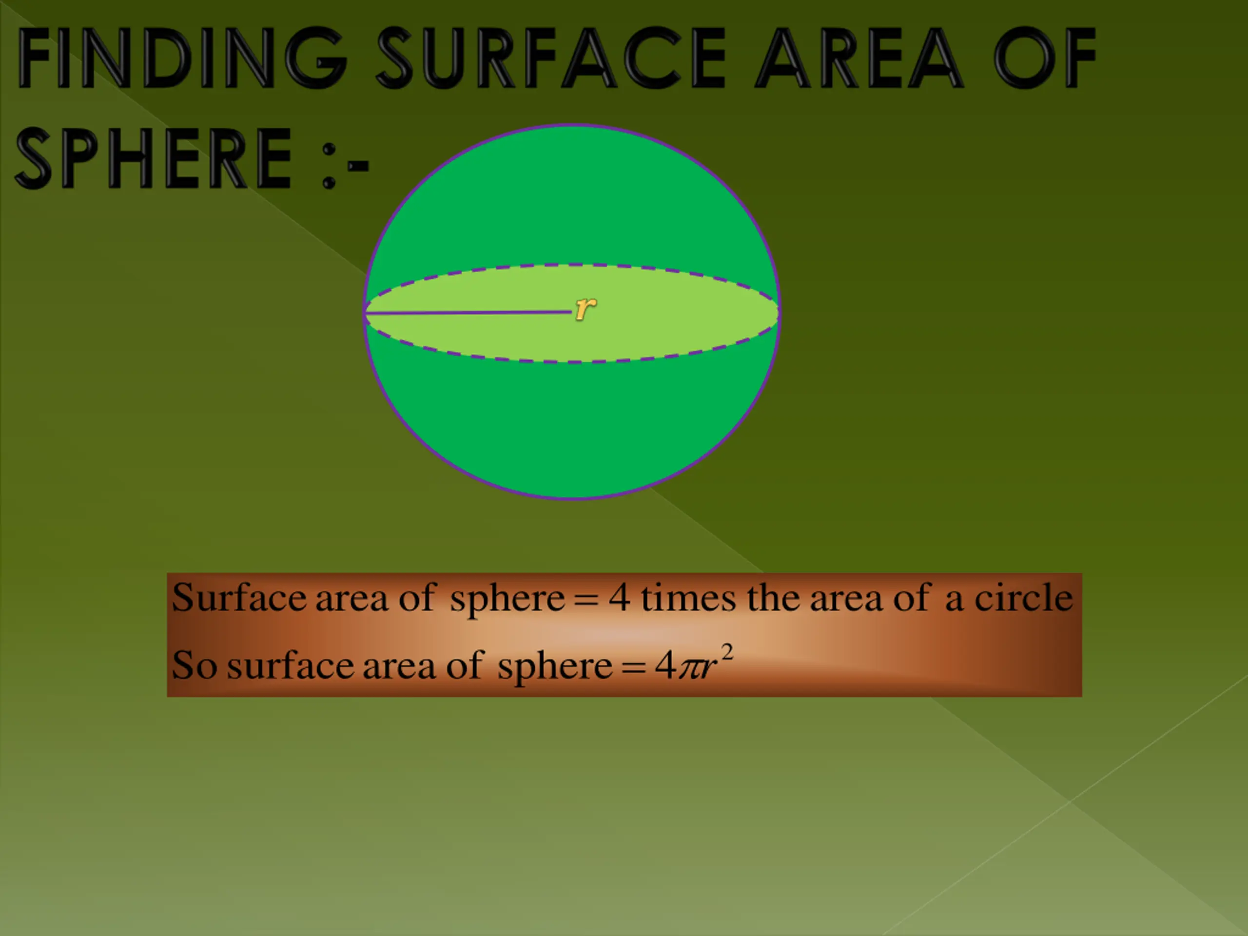 = Surface area of sphere circle a of area the times 4 r 4 = 2 surface So area of sphere