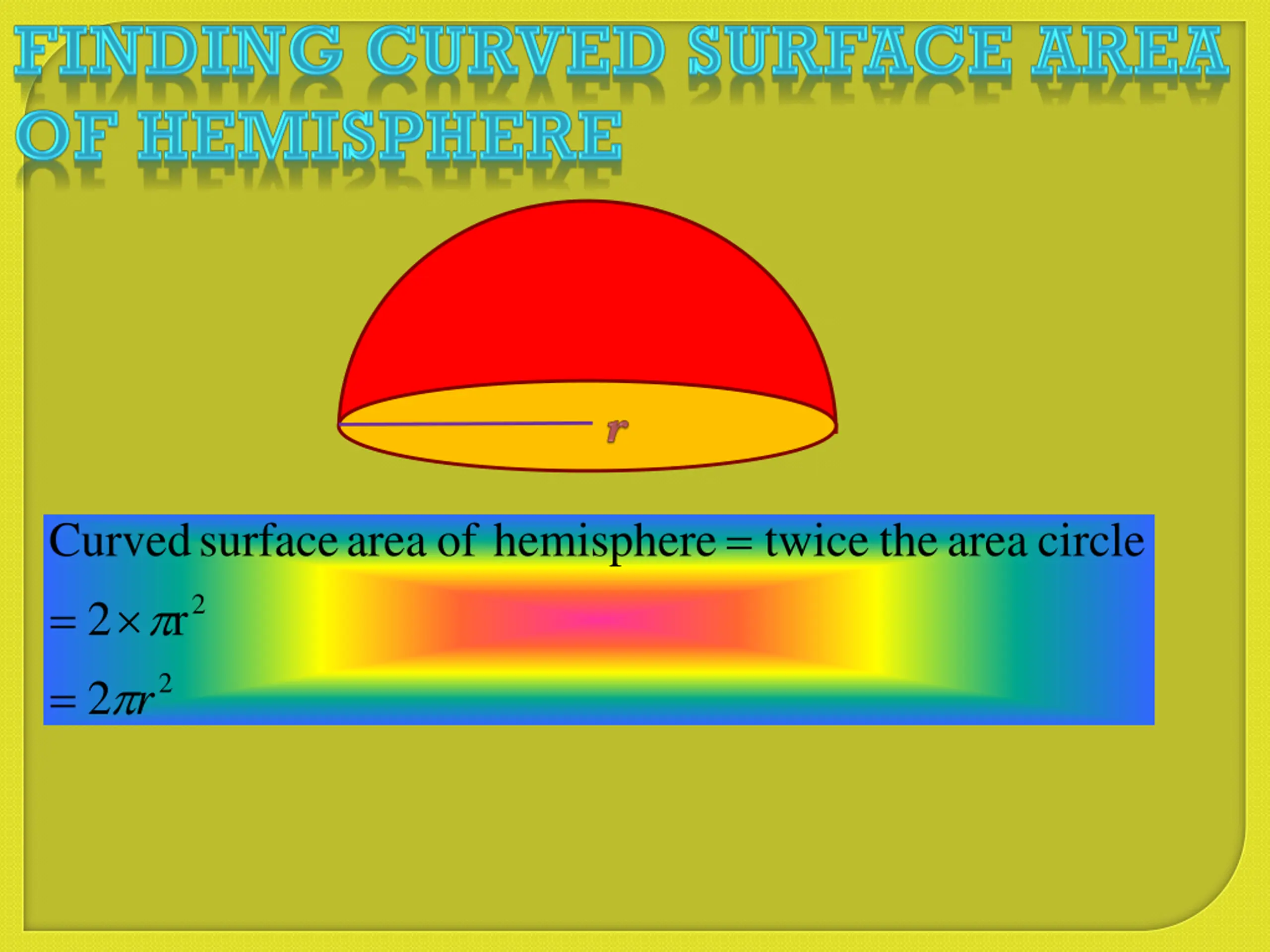 = Curved = surface area of hemisphere twice the area circle 2 2 r = 2 2 r