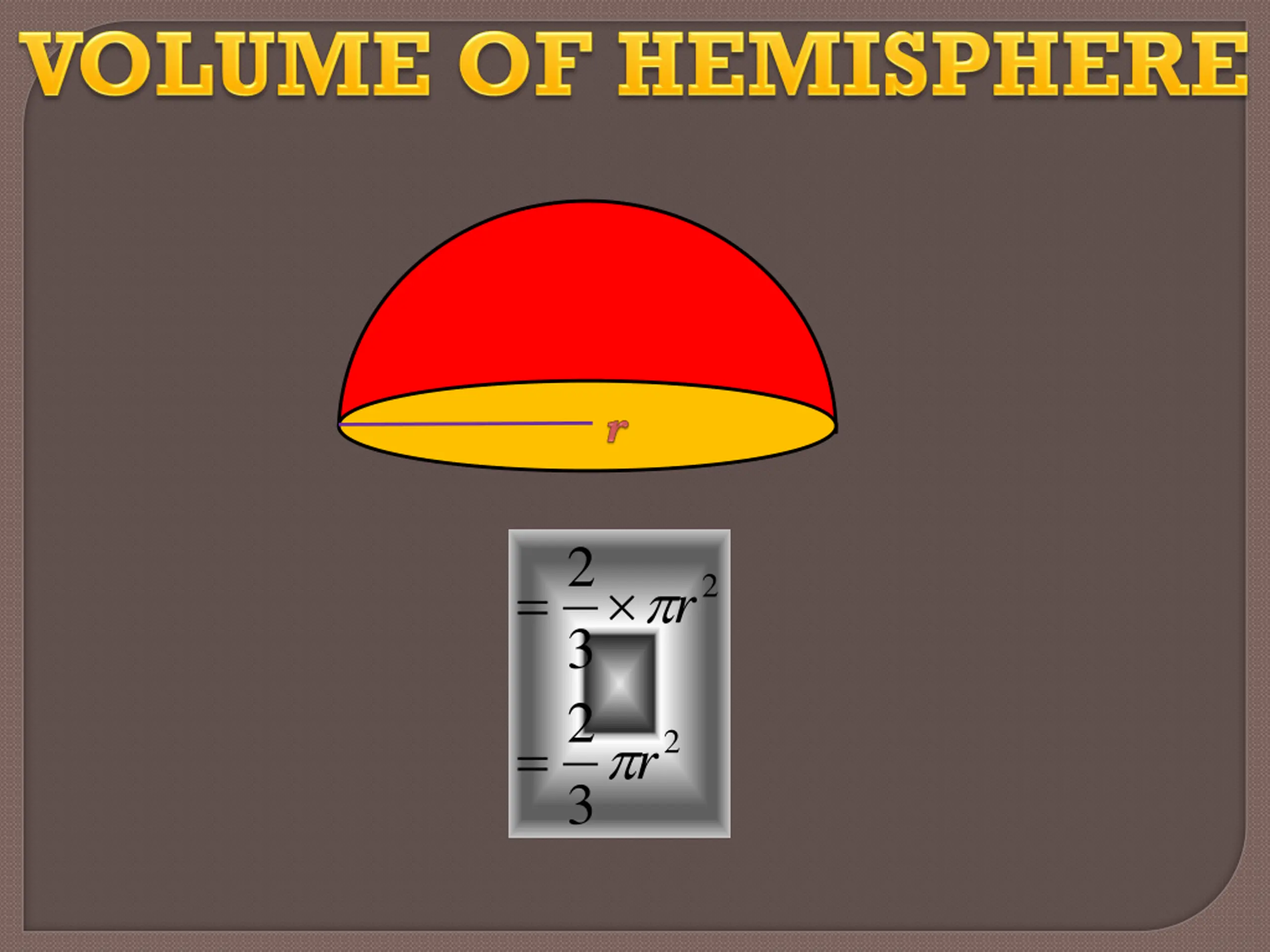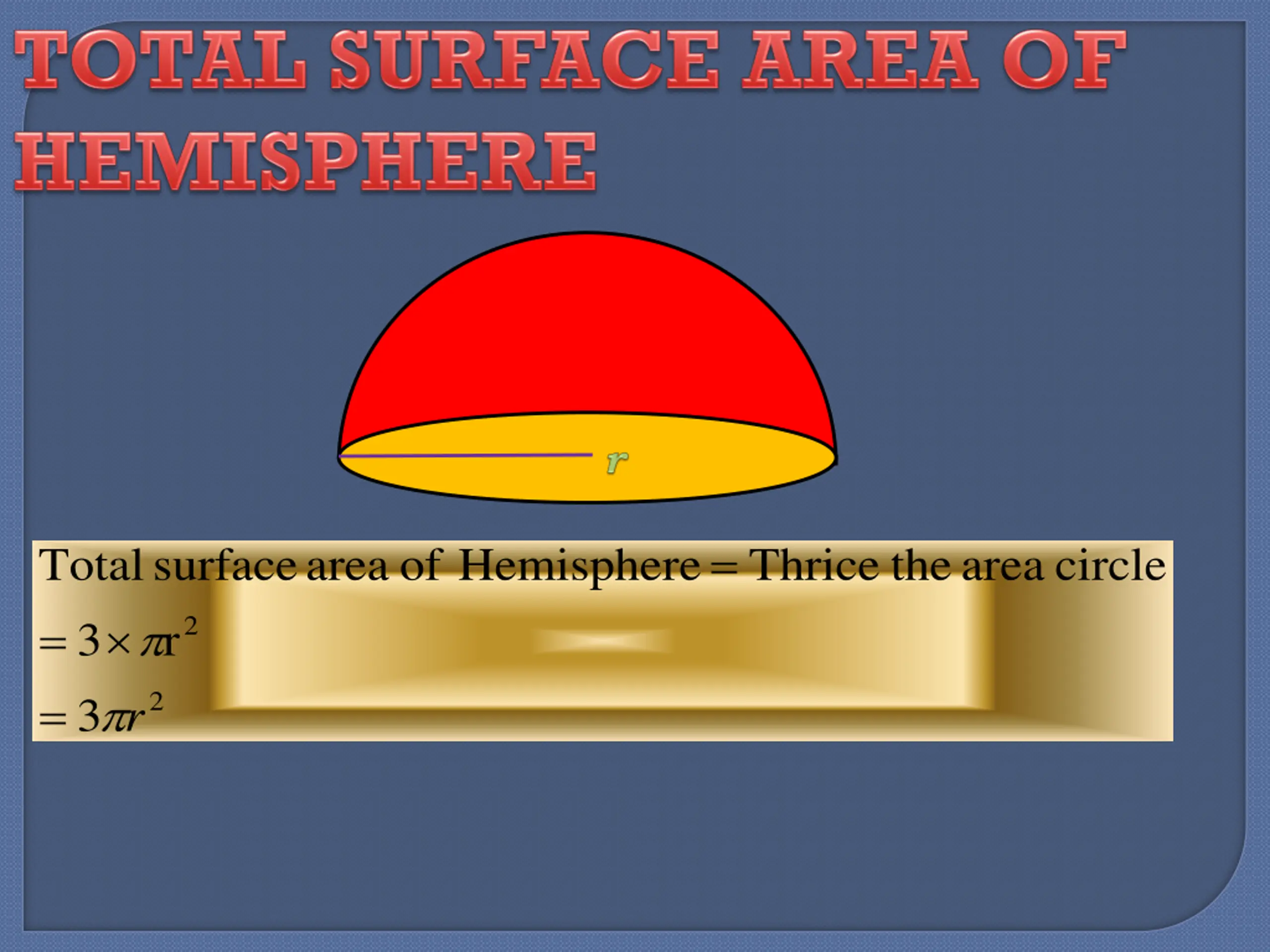= Total = surface area of Hemisphere Thrice the area circle 2 3 r = 2 3 r