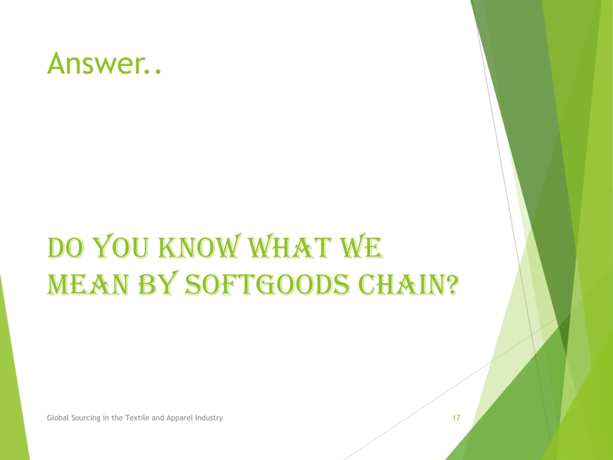 Answer.. Do you know what we mean by SOFTGOODS CHAIN? Global Sourcing in the Textile and Apparel Industry 17