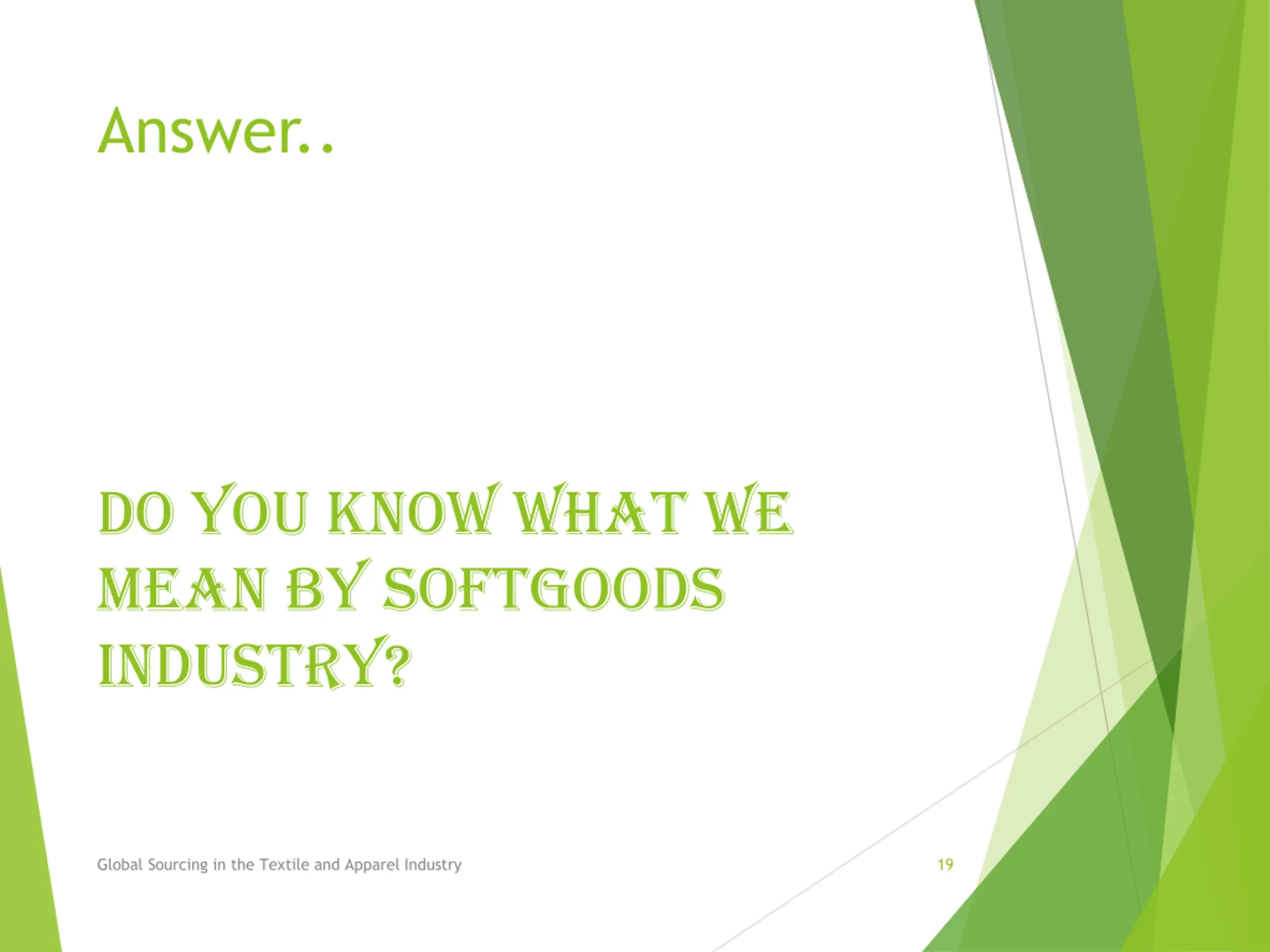 Answer.. Do you know what we mean by SOFTGOODS INDUSTRY? Global Sourcing in the Textile and Apparel Industry 19