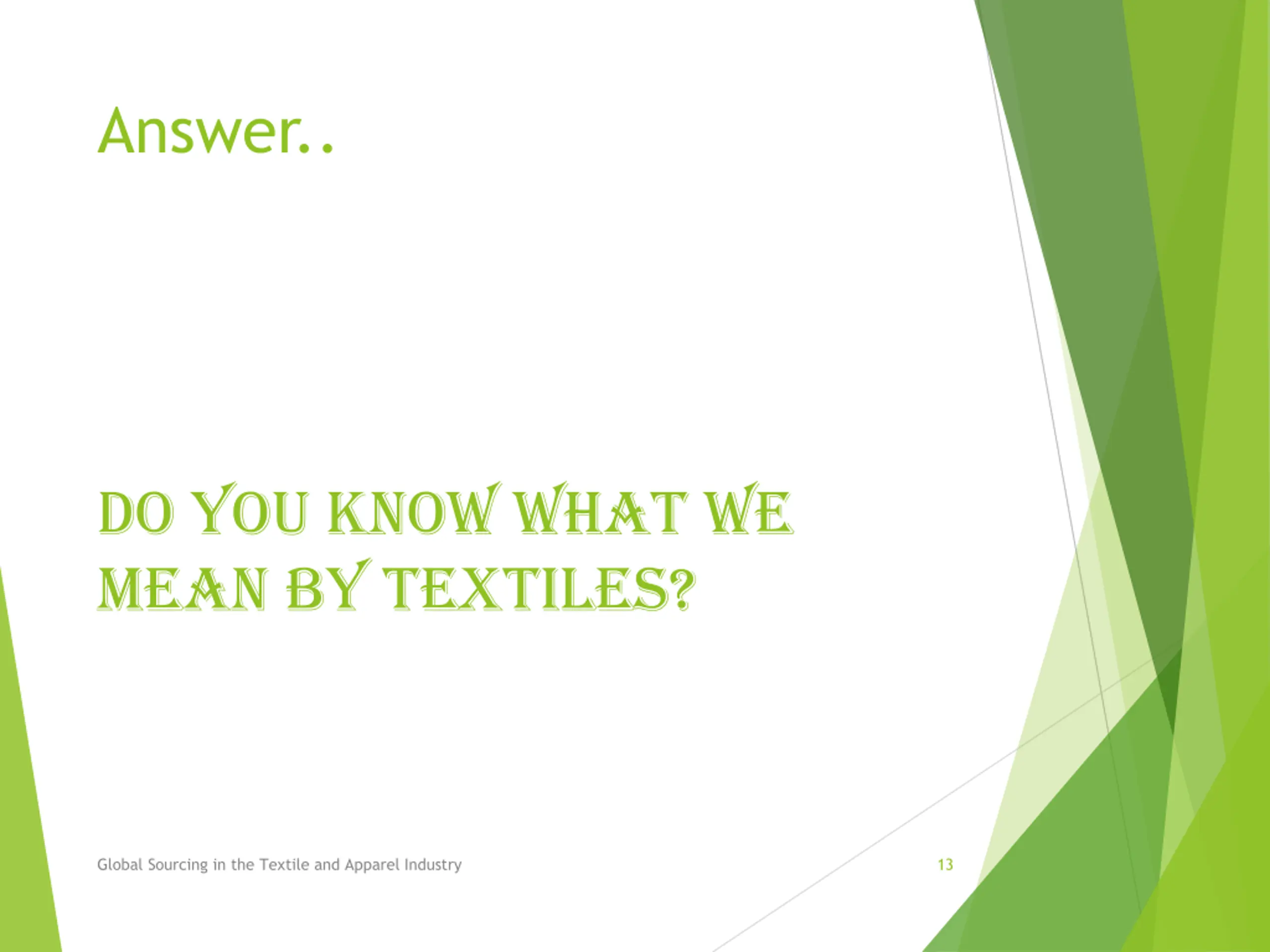 Answer.. Do you know what we mean by TEXTILES? Global Sourcing in the Textile and Apparel Industry 13