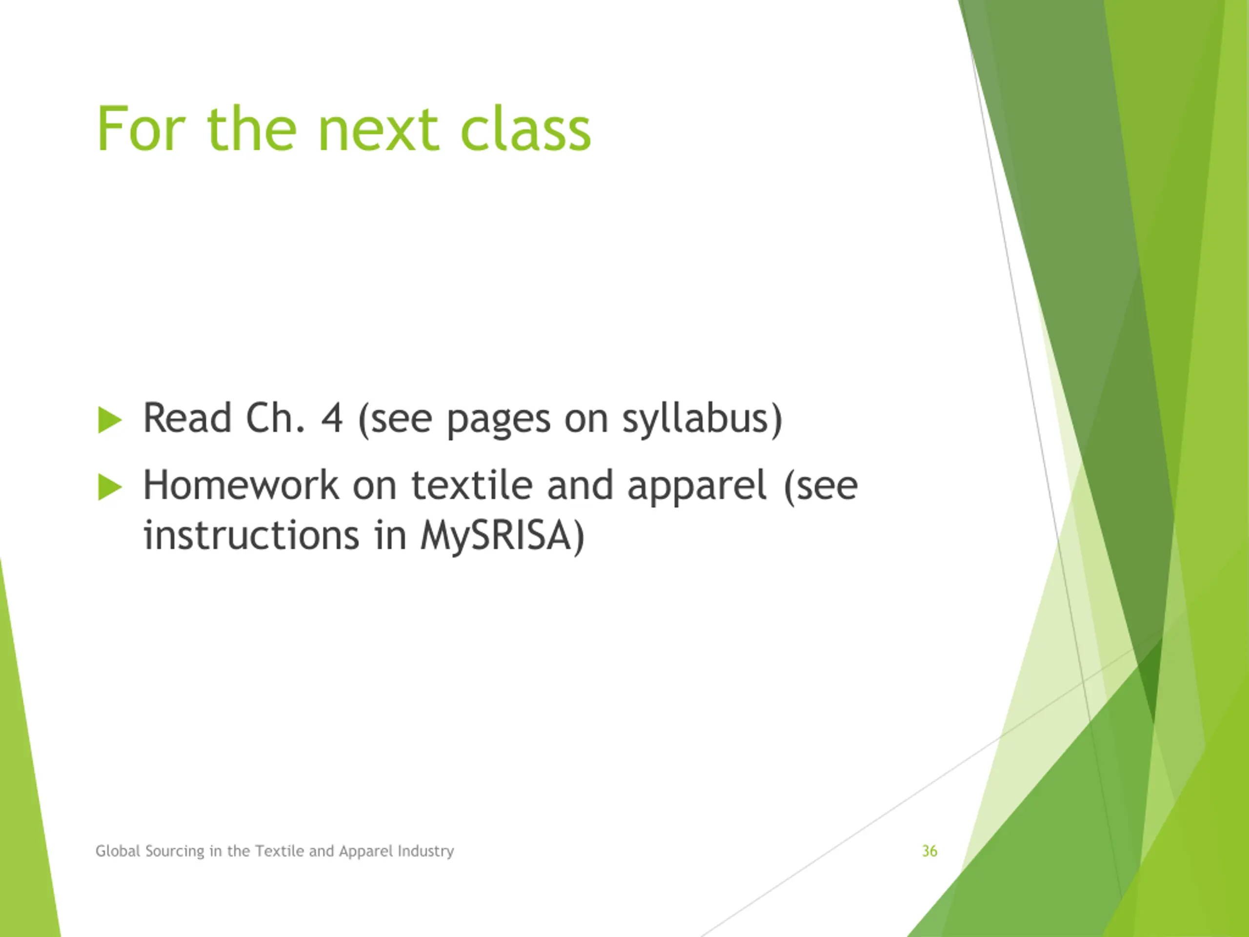 For the next class Read Ch. 4 (see pages on syllabus) Homework on textile and apparel (see instructions in MySRISA) Global Sourcing in the Textile and Apparel Industry 36