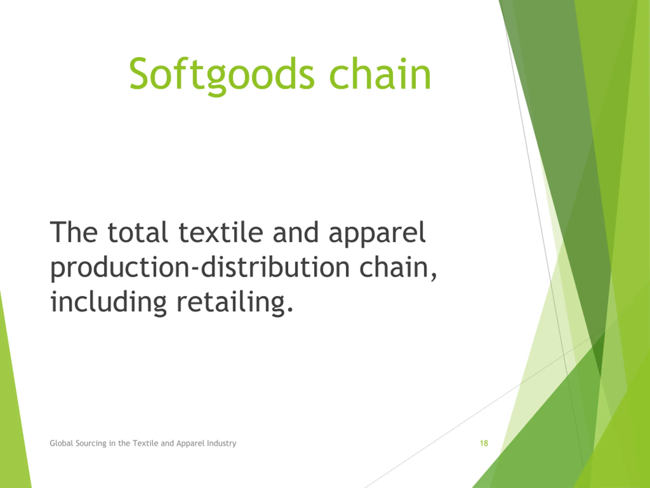 Softgoods chain The total textile and apparel production-distribution chain, including retailing. Global Sourcing in the Textile and Apparel Industry 18