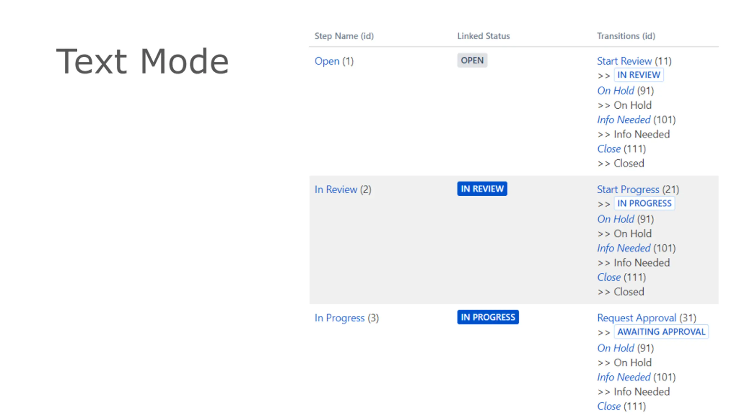 Transition Behaviors Status Transition > Destination Behaviors Screen: Resolve Issue Post Function: Fire a Issue Closed event that can be processed by the listeners. Screen: Assignment Post Function: Assign the issue to the current user. Screen: Assignment All Close > Closed All Info Needed > Info Needed Open Start Review > In Review In Progress Request Approval > Awaiting Approval Closed Reopen > Open Post Function: The value of field Resolution will be cleared. Post Function: Fire a Issue Reopened event that can be processed by the listeners. jirastrategy.com