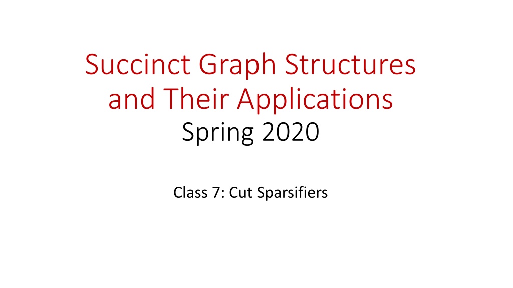 Succinct Graph Structures and Their Applications Spring 2020 Class 7: Cut Sparsifiers