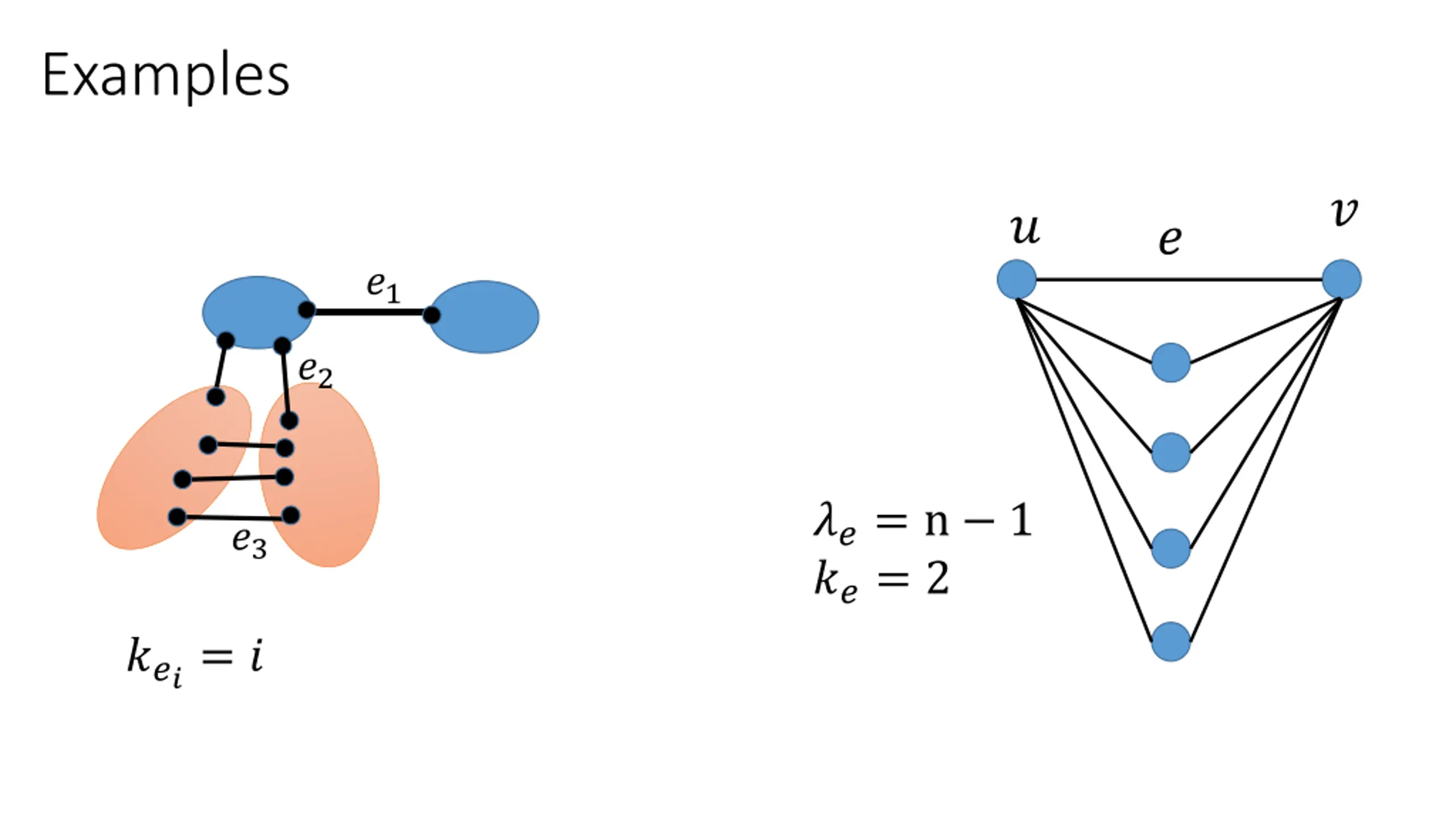 Connectivity Definitions A subgraph ? ? is ?-connected if ???- -??? ? ? A ?-strong component of G is a maximal ?-conn. vertex-induced subgraph of ? The strong connectivity of an edge ? denoted by ??is the max value ?such that there is a k-strong component containing ? The standard connectivity notion of ? = (?,?)denoted by ?? is the value of the minimum ?-? cut (# ?-? edge-disjoint paths) ??/2 ??/2