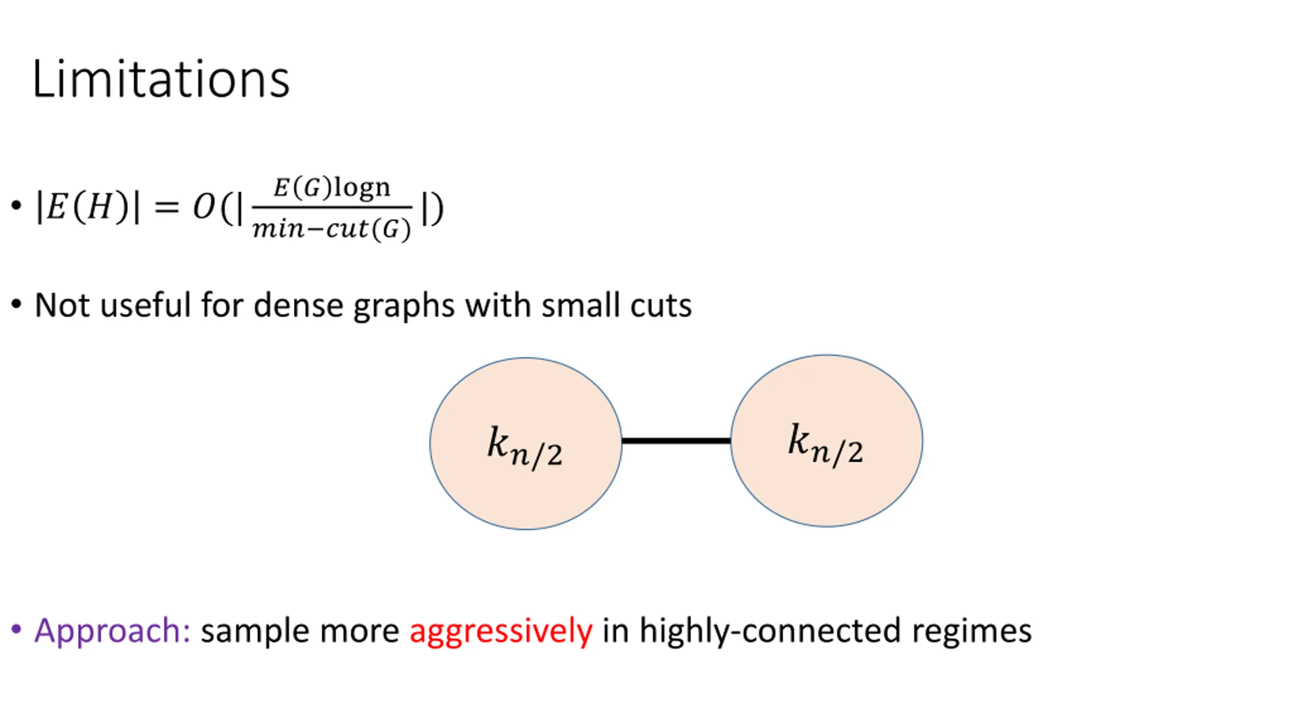 Limitations ? ? logn ??? ???(?)|) ? ? = ?(| Not useful for dense graphs with small cuts ??/2 ??/2 Approach: sample more aggressively in highly-connected regimes