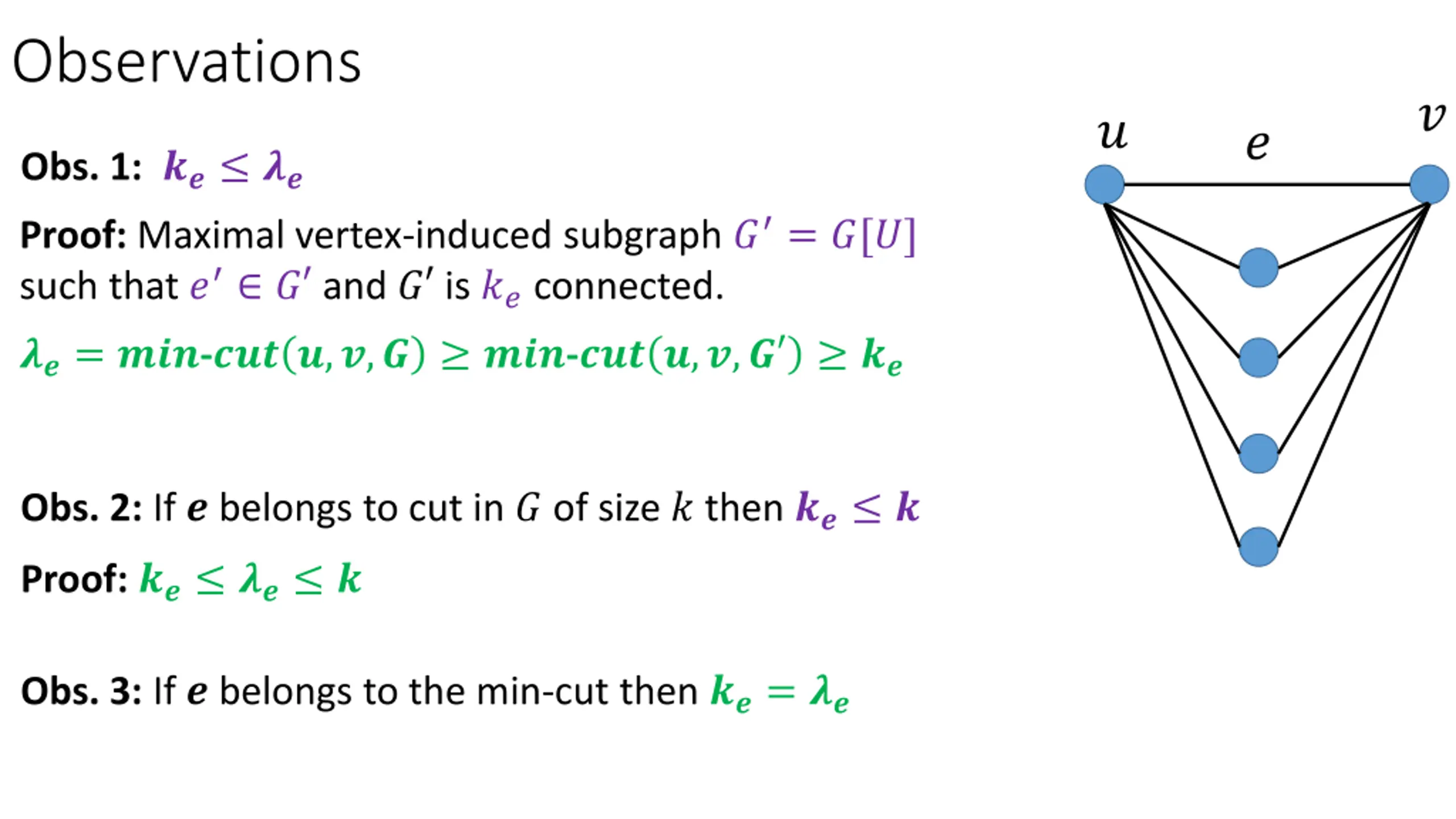 Observations ? ? ? Obs. 1: ?? ?? Proof: Maximal vertex-induced subgraph ? = ?[?] such that ? ? and ? is ?? connected. ??= ???-??? ?,?,? ???-??? ?,?,? ?? Obs. 2: If? belongs to cut in ? of size ? then ?? ? Proof: ?? ?? ? Obs. 3: If ?belongs to the min-cut then ??= ??