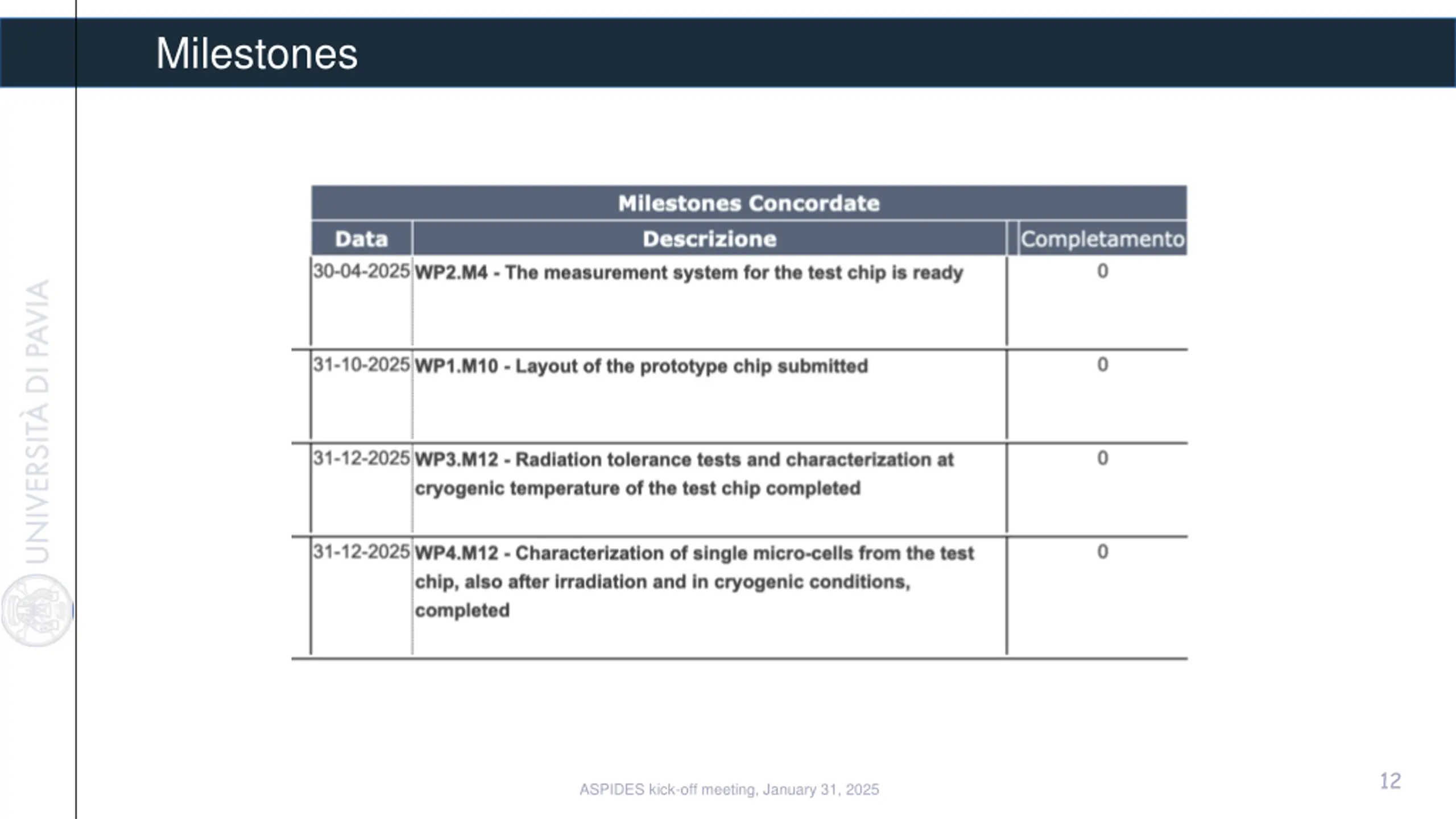 Milestones 12 ASPIDES kick-off meeting, January 31, 2025