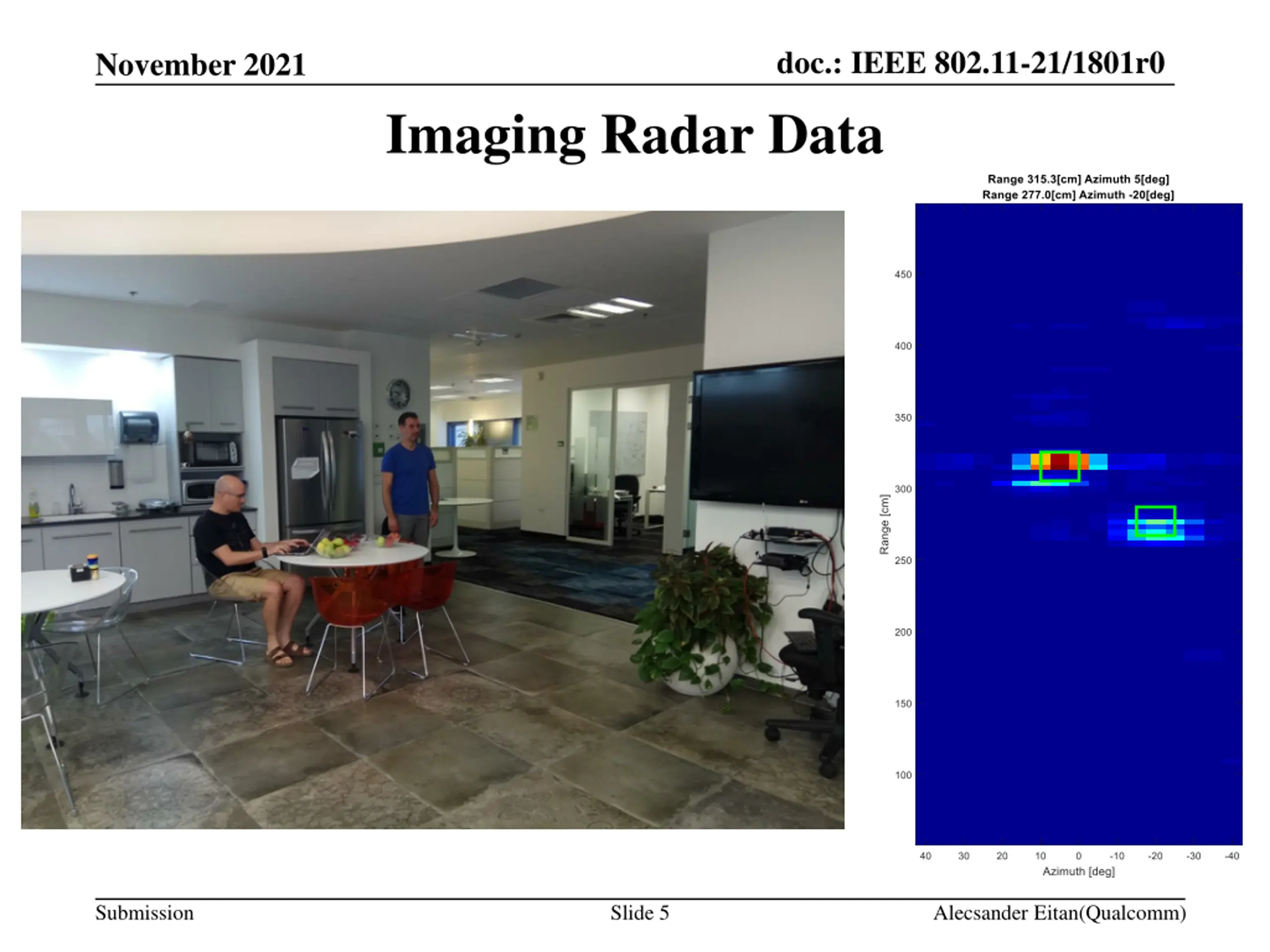 doc.: IEEE 802.11-21/1801r0 November 2021 Imaging Radar Data Submission Slide 5 Alecsander Eitan(Qualcomm)