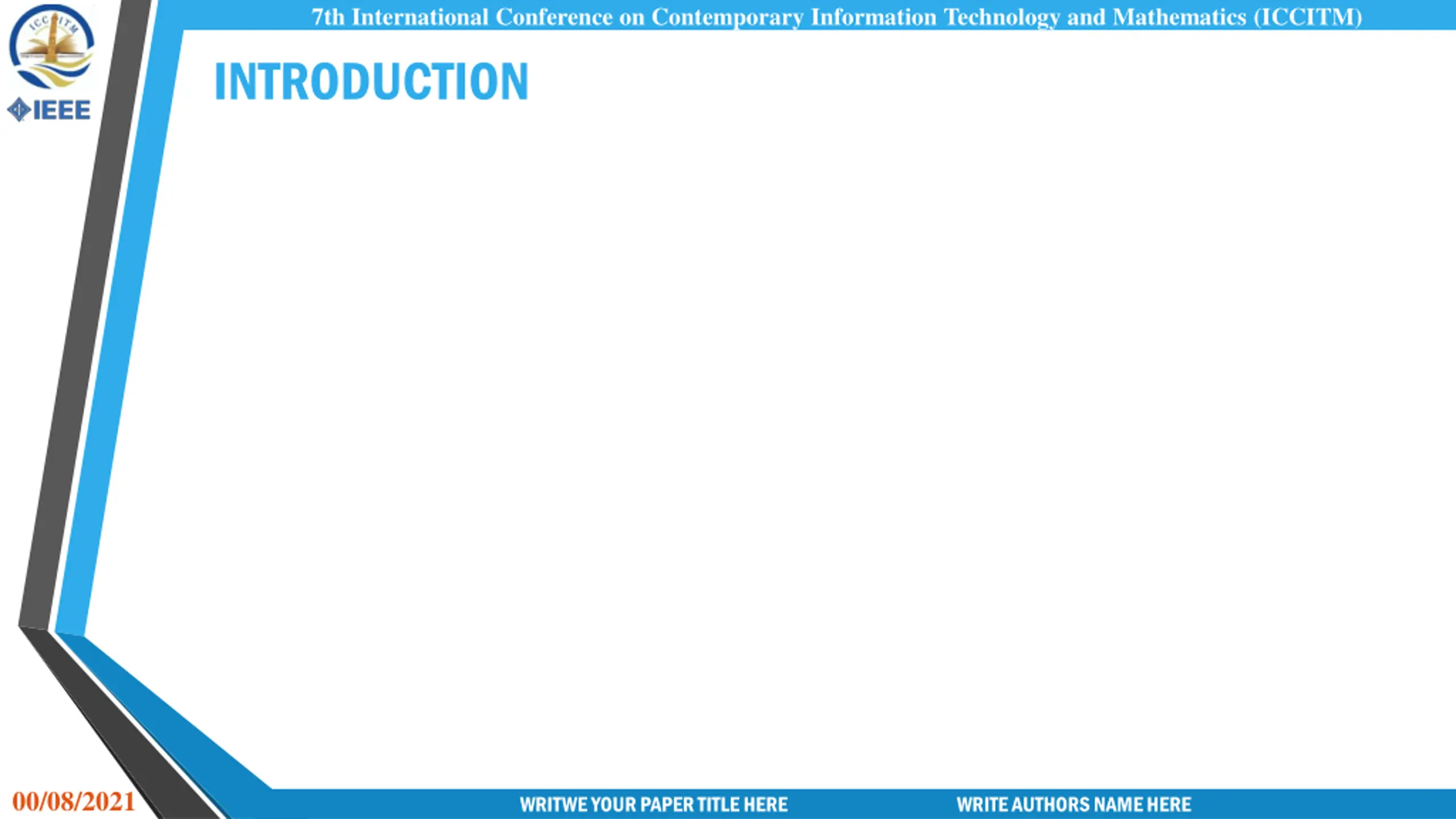 7th International Conference on Contemporary Information Technology and Mathematics (ICCITM) INTRODUCTION 00/08/2021 WRITWE YOUR PAPER TITLE HERE WRITE AUTHORS NAME HERE