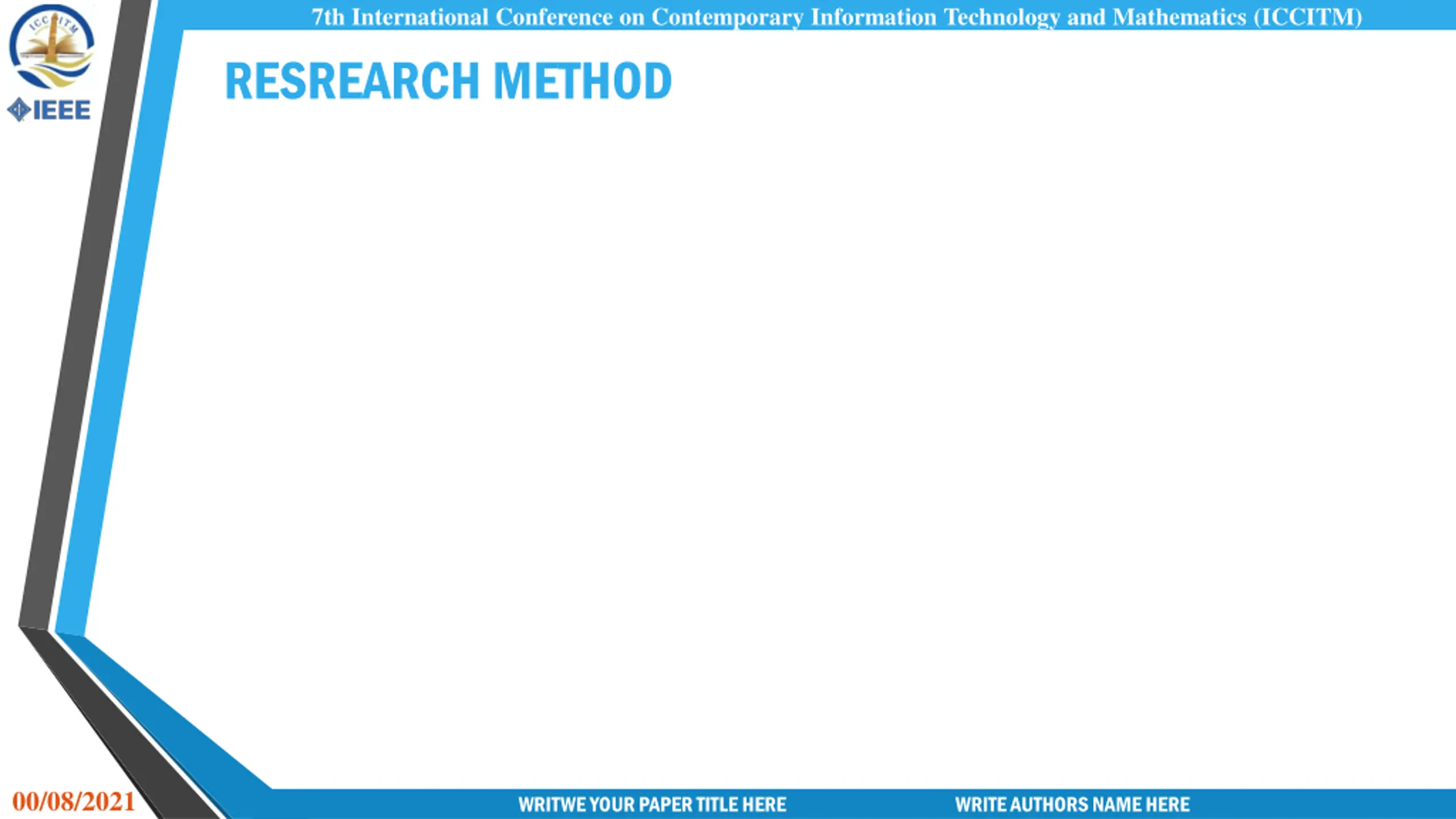 7th International Conference on Contemporary Information Technology and Mathematics (ICCITM) RESREARCH METHOD 00/08/2021 WRITWE YOUR PAPER TITLE HERE WRITE AUTHORS NAME HERE