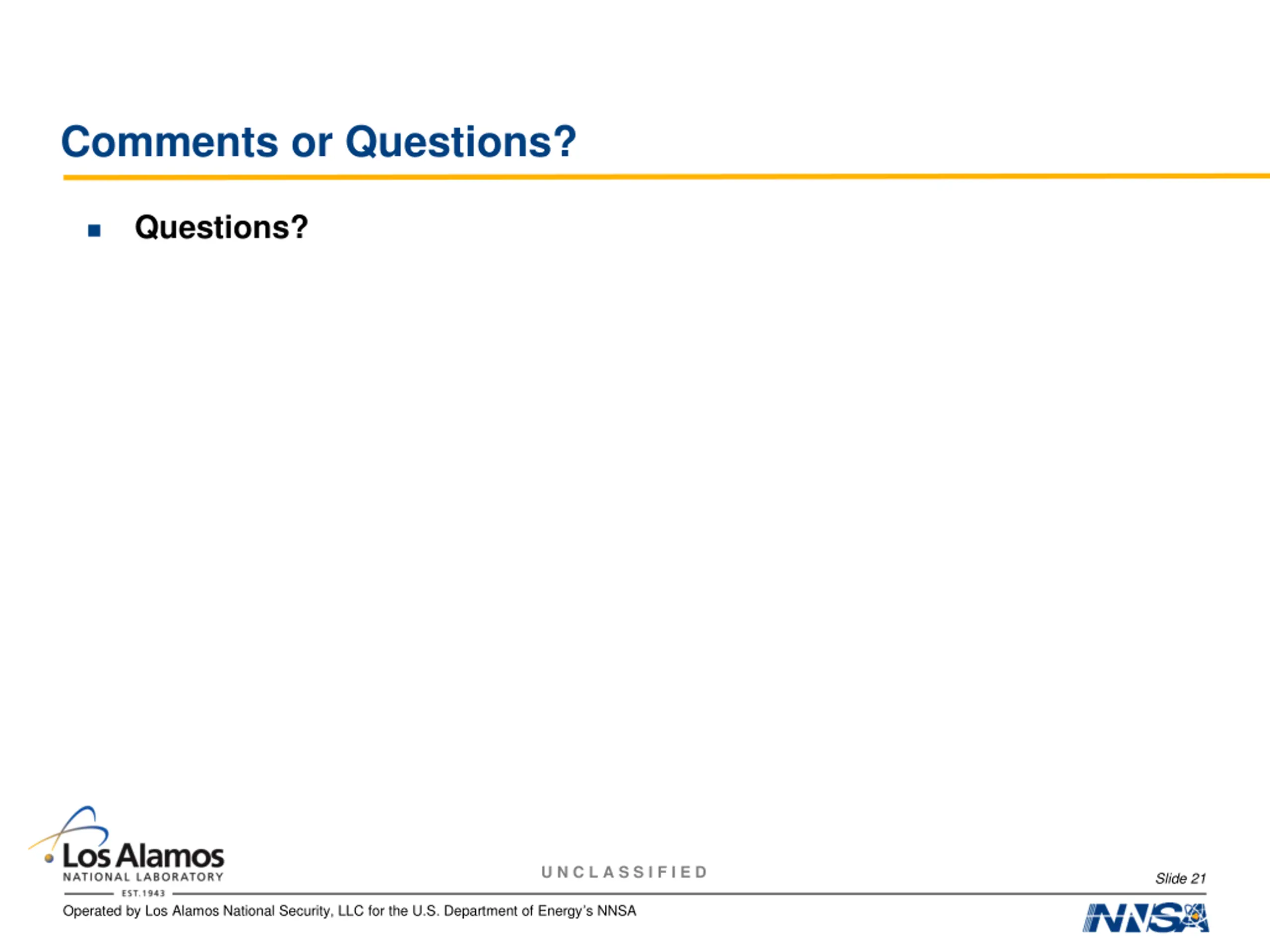 Comments or Questions? Questions? U N C L A S S I F I E D Slide 21 Operated by Los Alamos National Security, LLC for the U.S. Department of Energy s NNSA
