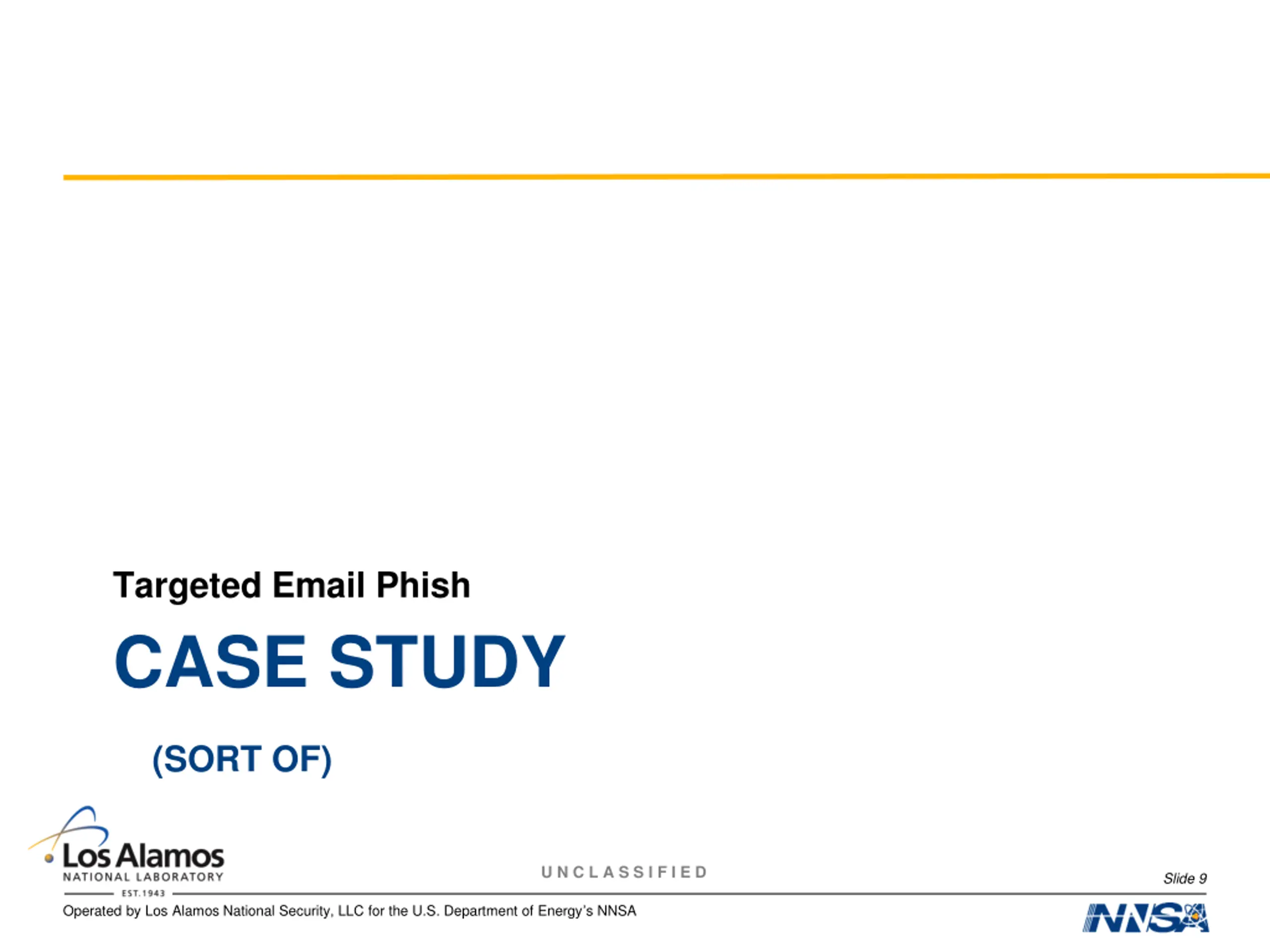 Targeted Email Phish CASE STUDY (SORT OF) U N C L A S S I F I E D Slide 9 Operated by Los Alamos National Security, LLC for the U.S. Department of Energy s NNSA