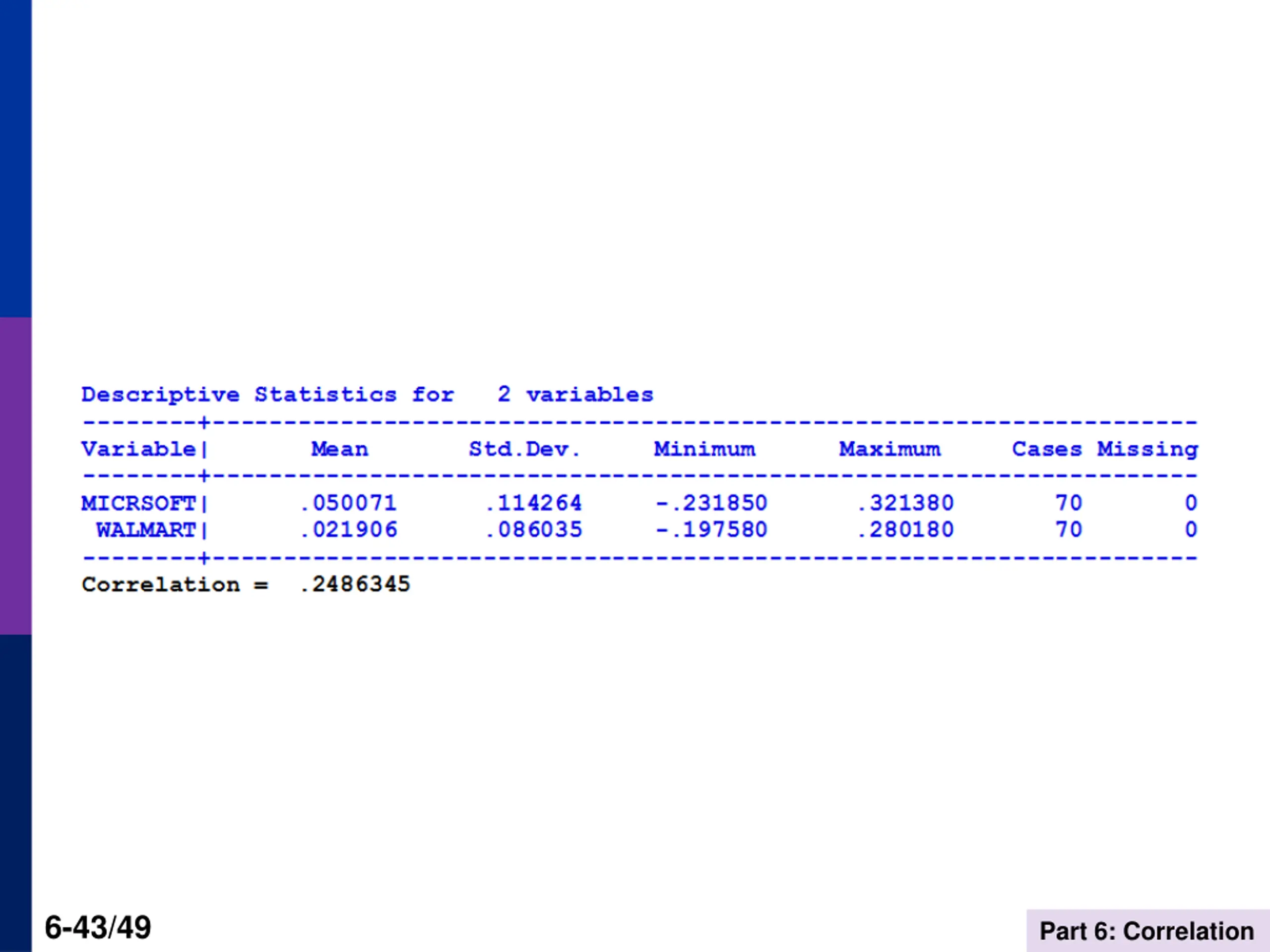 The two returns are positively correlated. 6-42/49 Part 6: Correlation