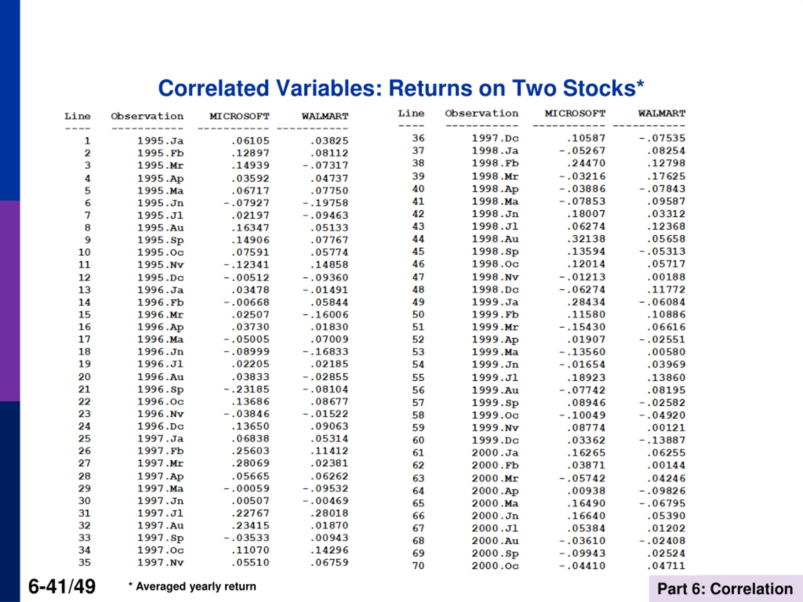 Correlated Variables: Returns on Two Stocks* 6-41/49 Part 6: Correlation * Averaged yearly return