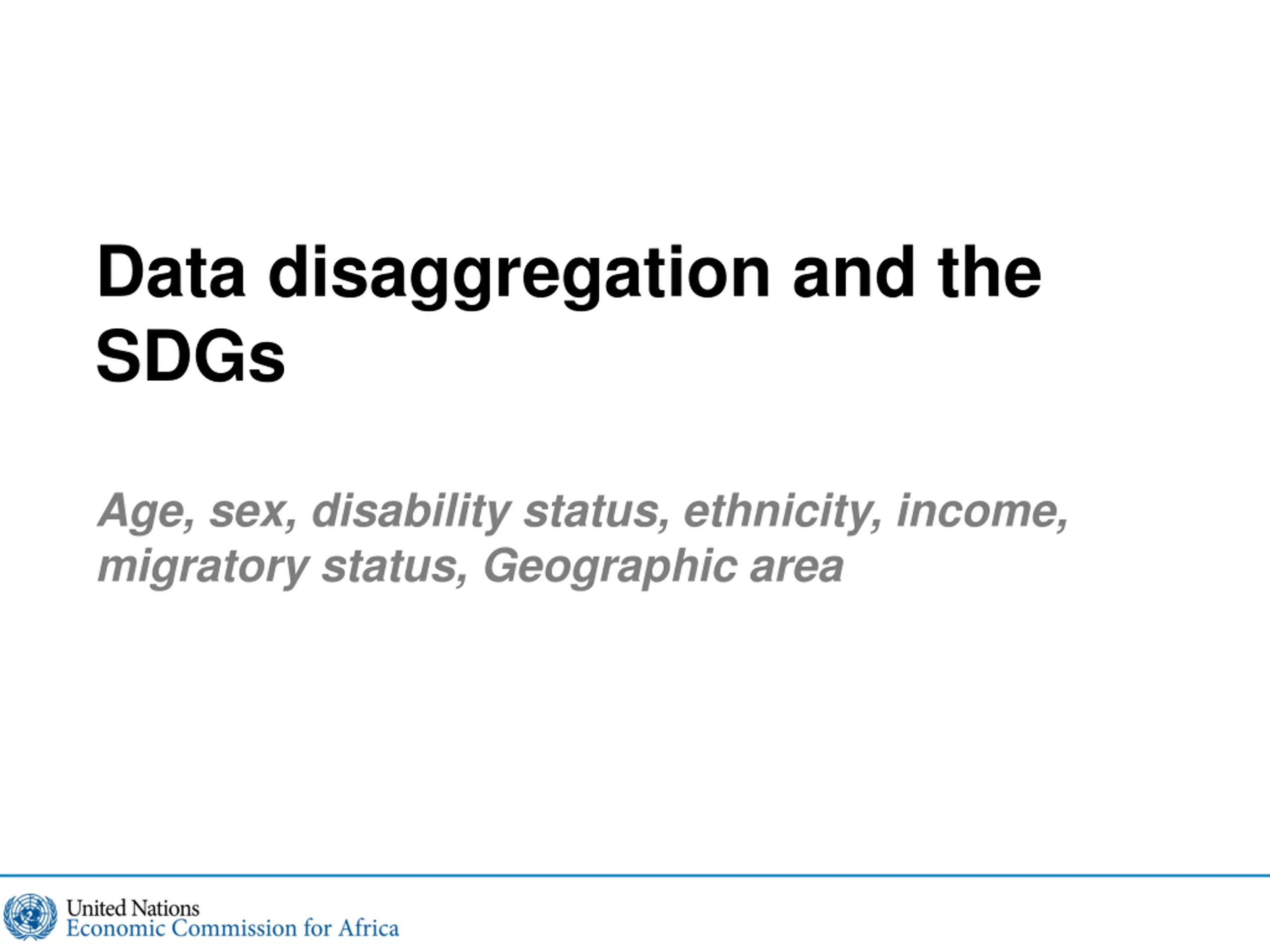 Data disaggregation and the SDGs Age, sex, disability status, ethnicity, income, migratory status, Geographic area