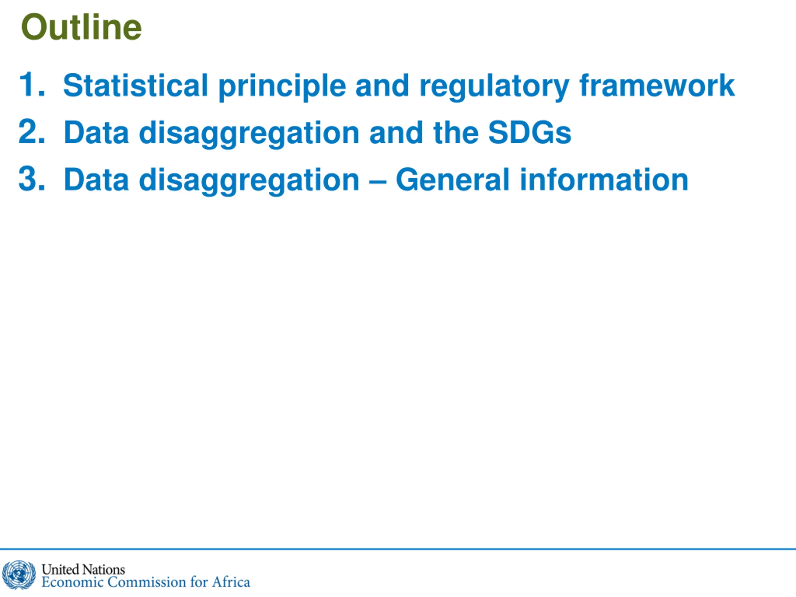 Outline 1. Statistical principle and regulatory framework 2. Data disaggregation and the SDGs 3. Data disaggregation General information