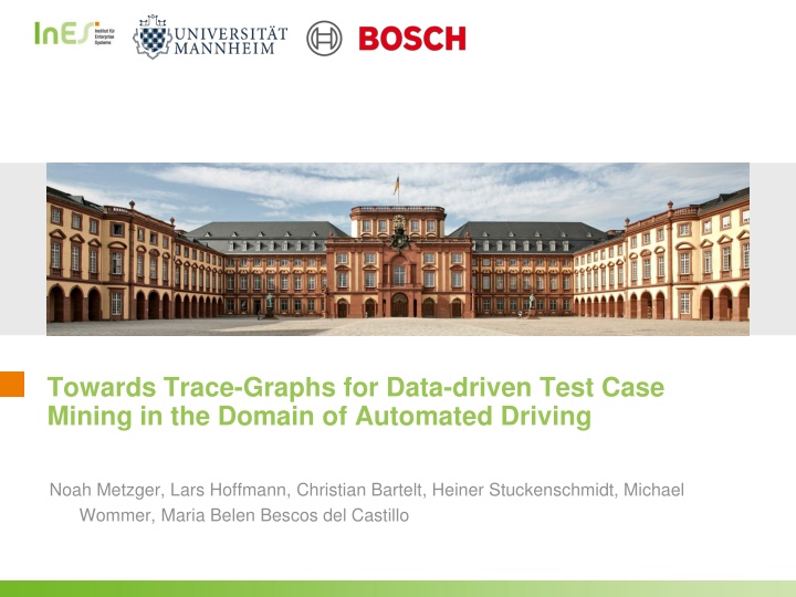 Explore how trace graphs are utilized for data-driven test case mining in the automated driving domain. The study addresses challenges with traditional testing approaches, proposing a new method for quantifying real-world scenarios through parameter discretization models. Evaluation and discussion highlight the effectiveness of the approach in improving testing efficiency for autonomous vehicles.