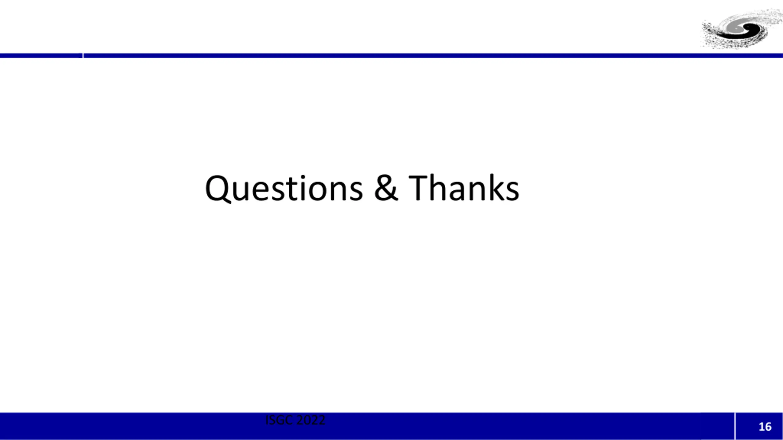 Questions & Thanks ISGC 2022 16
