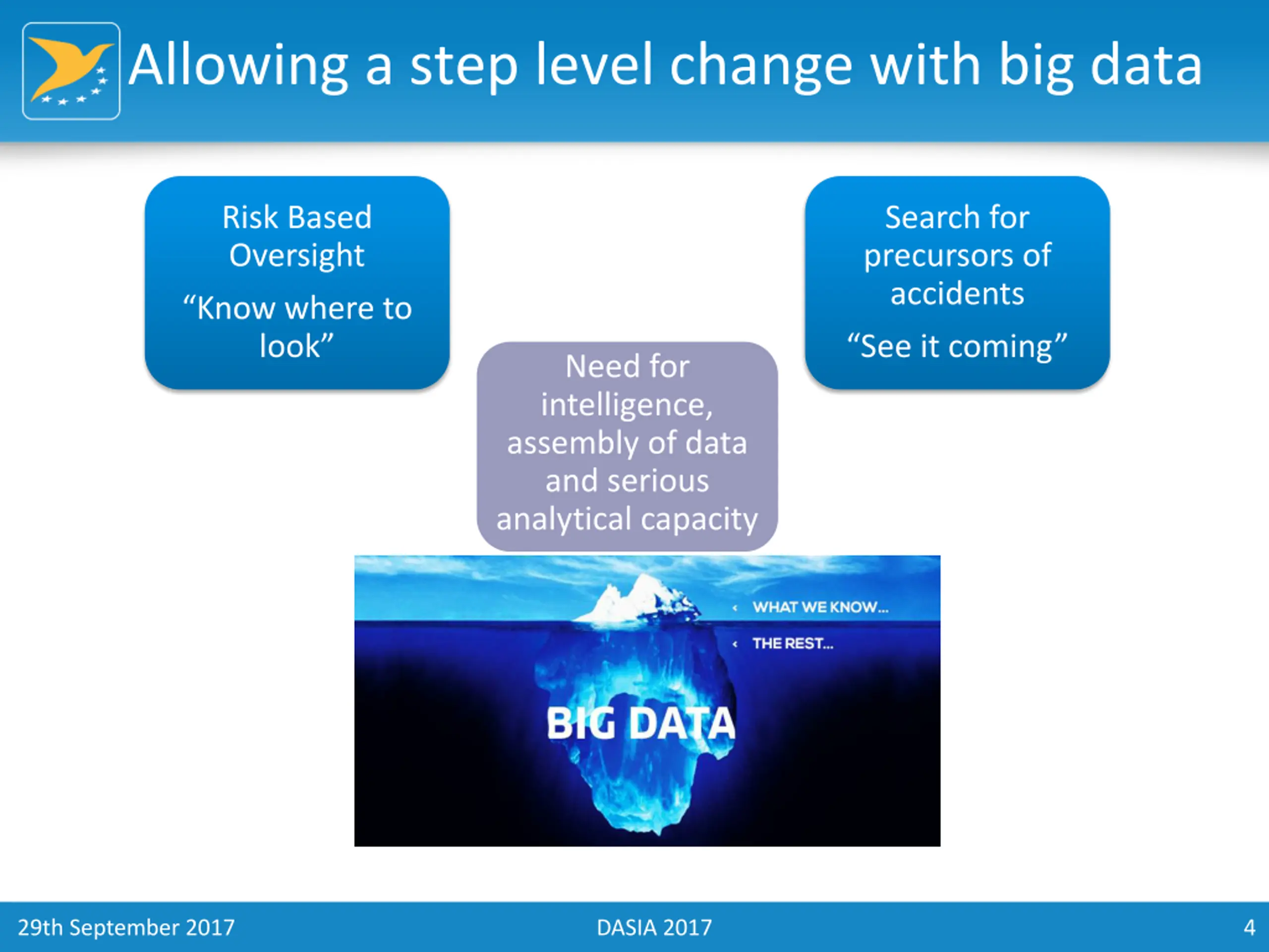 Allowing a step level change with big data Risk Based Oversight Know where to look Search for precursors of accidents See it coming Need for intelligence, assembly of data and serious analytical capacity 29th September 2017 DASIA 2017 4