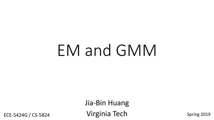 EM and GMM Jia-Bin Huang Virginia Tech Spring 2019 ECE-5424G / CS-5824