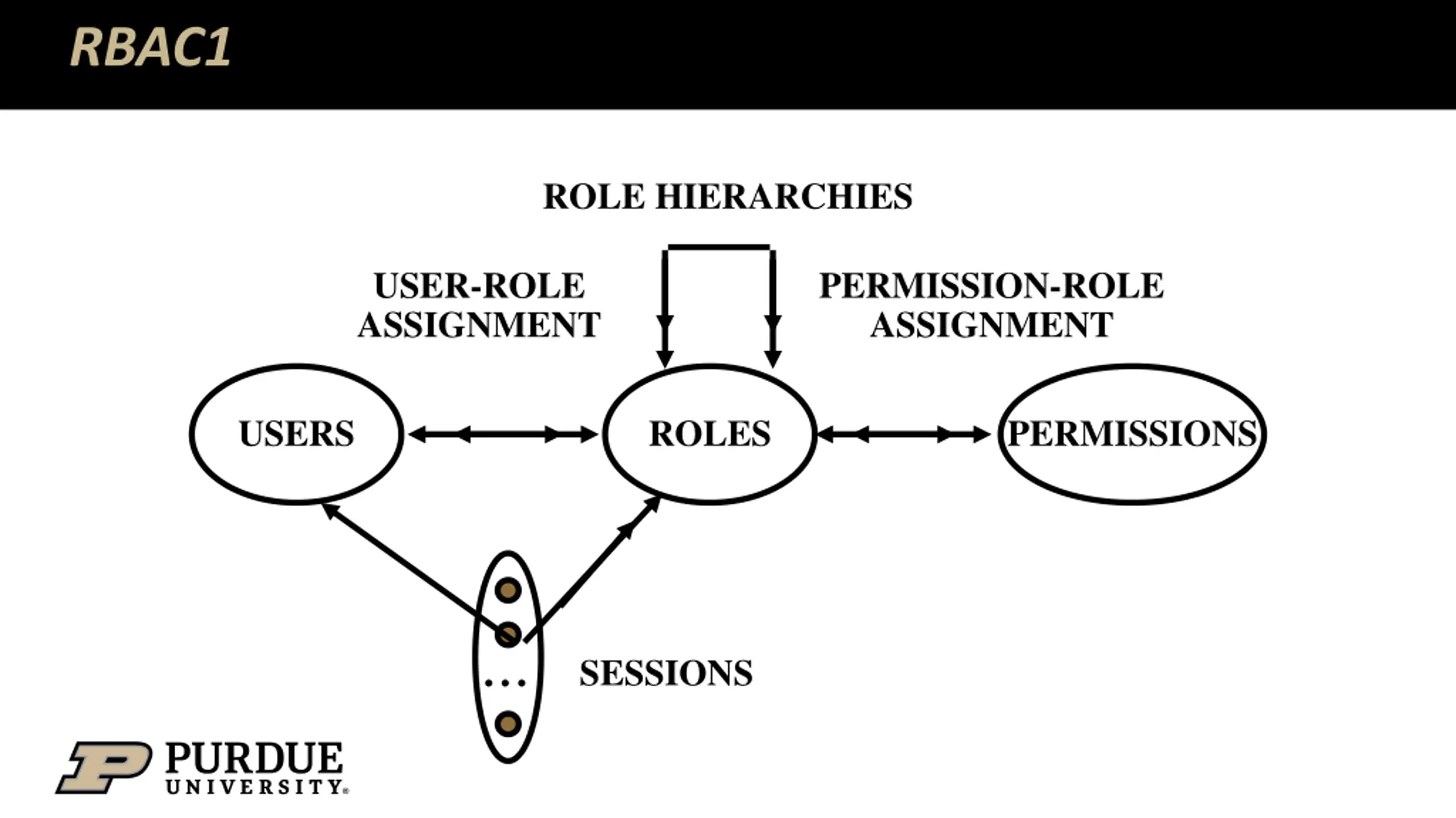 RBAC1 ROLE HIERARCHIES USER-ROLE ASSIGNMENT PERMISSION-ROLE ASSIGNMENT USERS ROLES PERMISSIONS ... SESSIONS