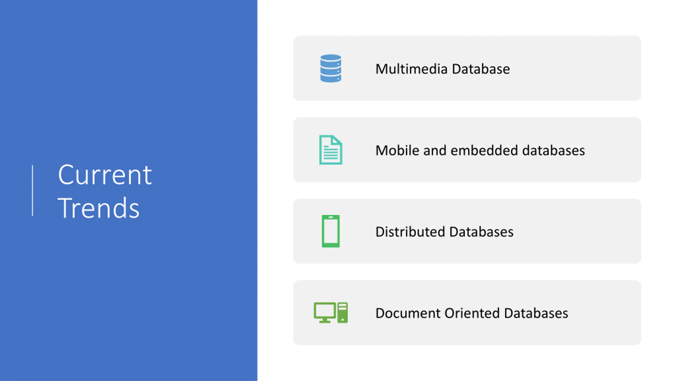 Multimedia Database Mobile and embedded databases Current Trends Distributed Databases Document Oriented Databases