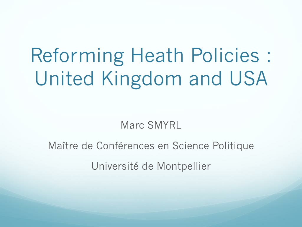 Reforming Heath Policies : United Kingdom and USA Marc SMYRL Ma tre de Conf rences en Science Politique Universit de Montpellier