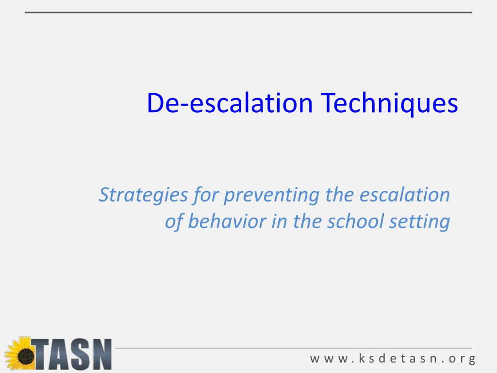De-escalation Techniques Strategies for preventing the escalation of behavior in the school setting w w w . k s d e t a s n . o r g